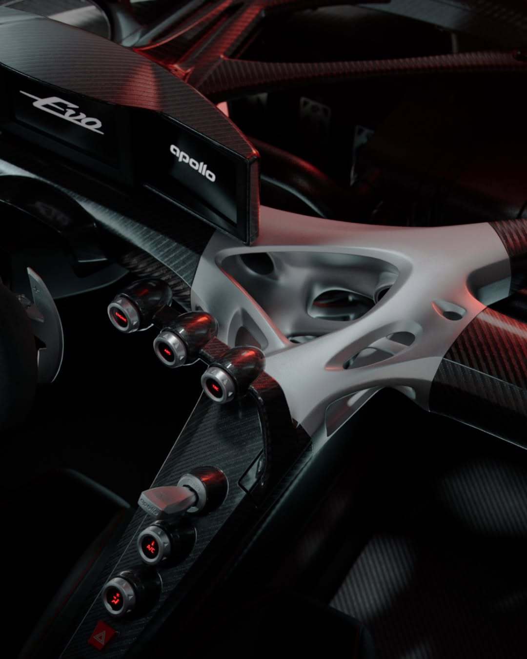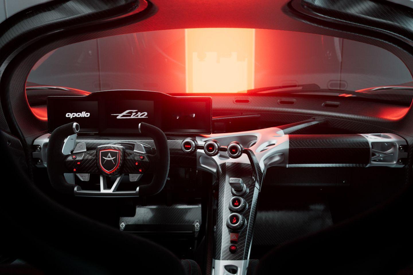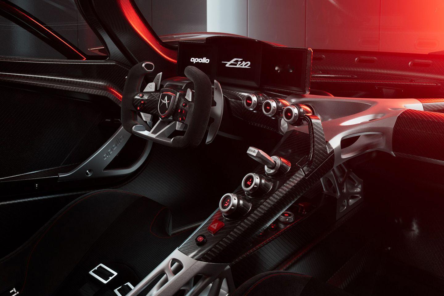 一天一张文艺照 阿波罗EVO量产版亮相~外观有细微变化,采用了新的尾排造型(图10)量产版内饰和原型车(图7)差别非常大,方向盘和中控都是新设计,结构完全暴露,采用拓扑优化和3D打印的铝和碳纤维的拼接骨架,很浓的机械味~