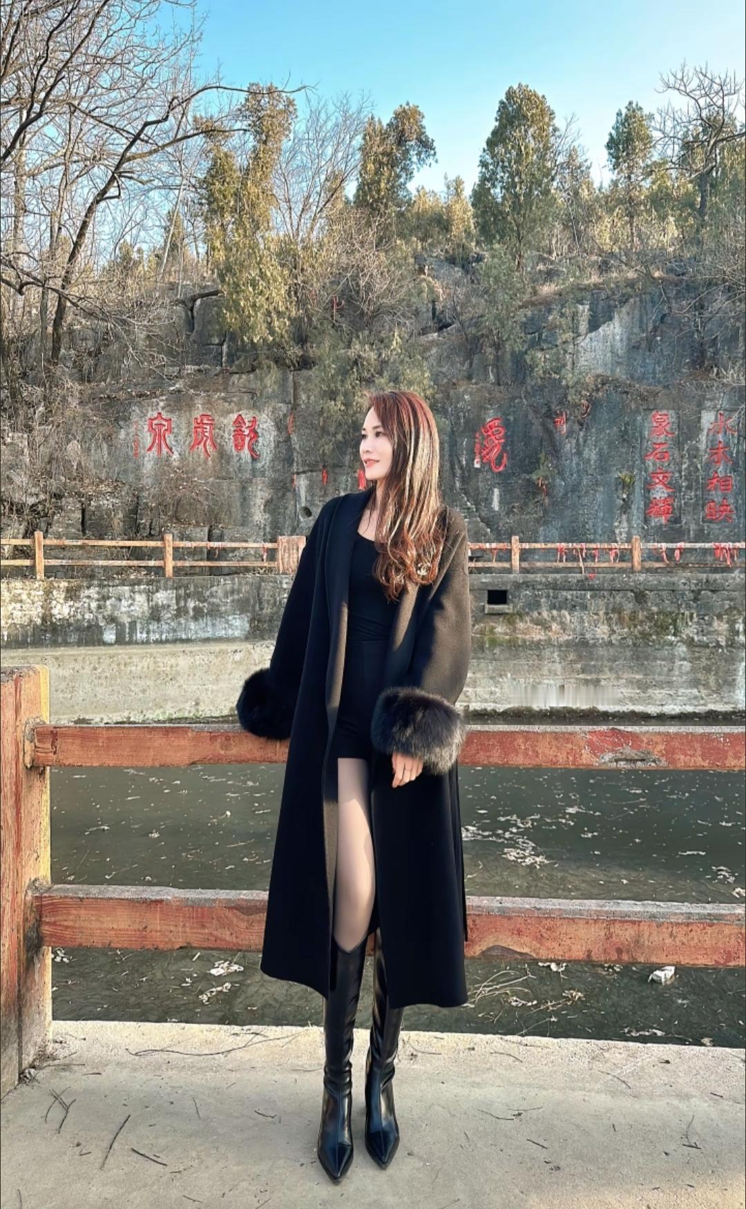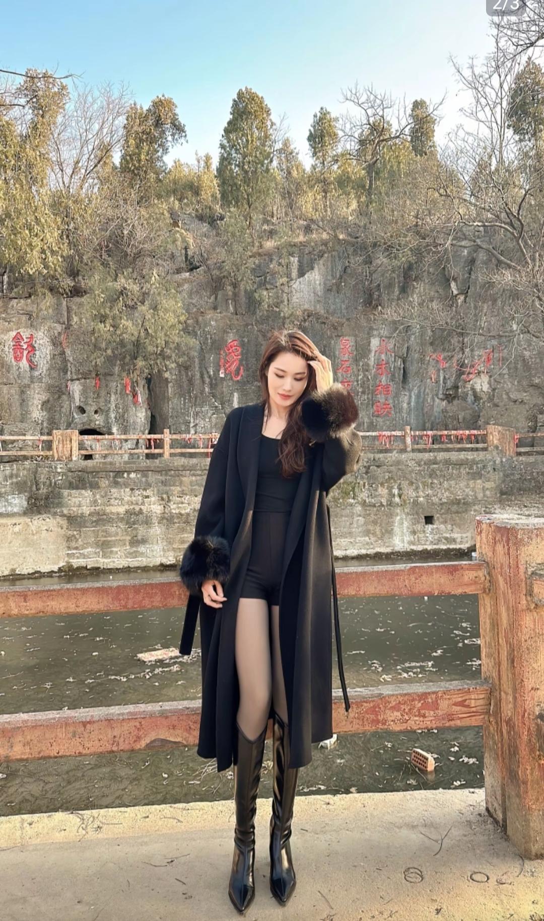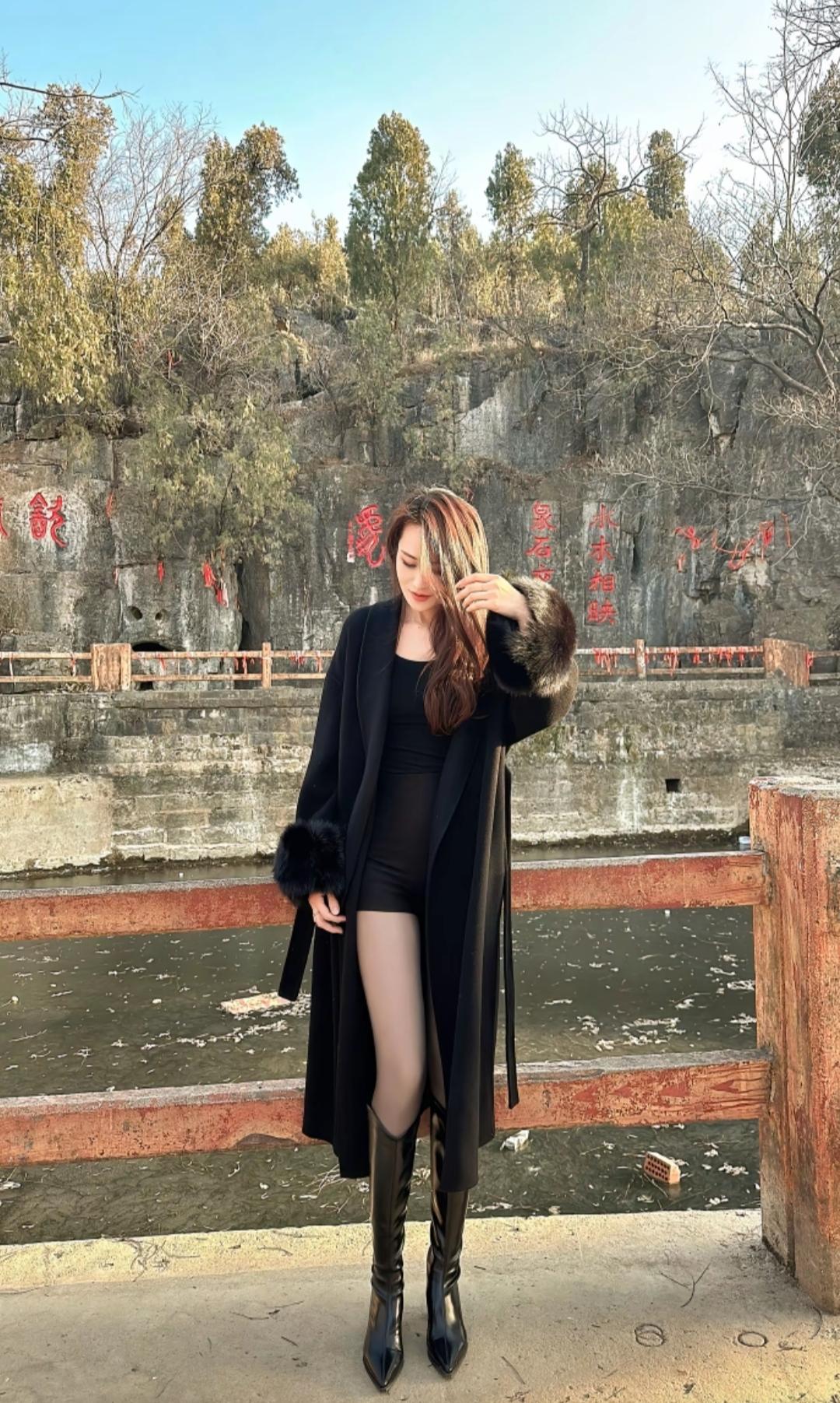 大衣、长靴再加上黑透肤的神器,这身穿搭怎么样?