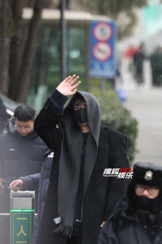 刘宇宁2026央视春晚首次联排 刘宇宁黑大衣连帽飘雪氛围感 刘宇宁2026央视春