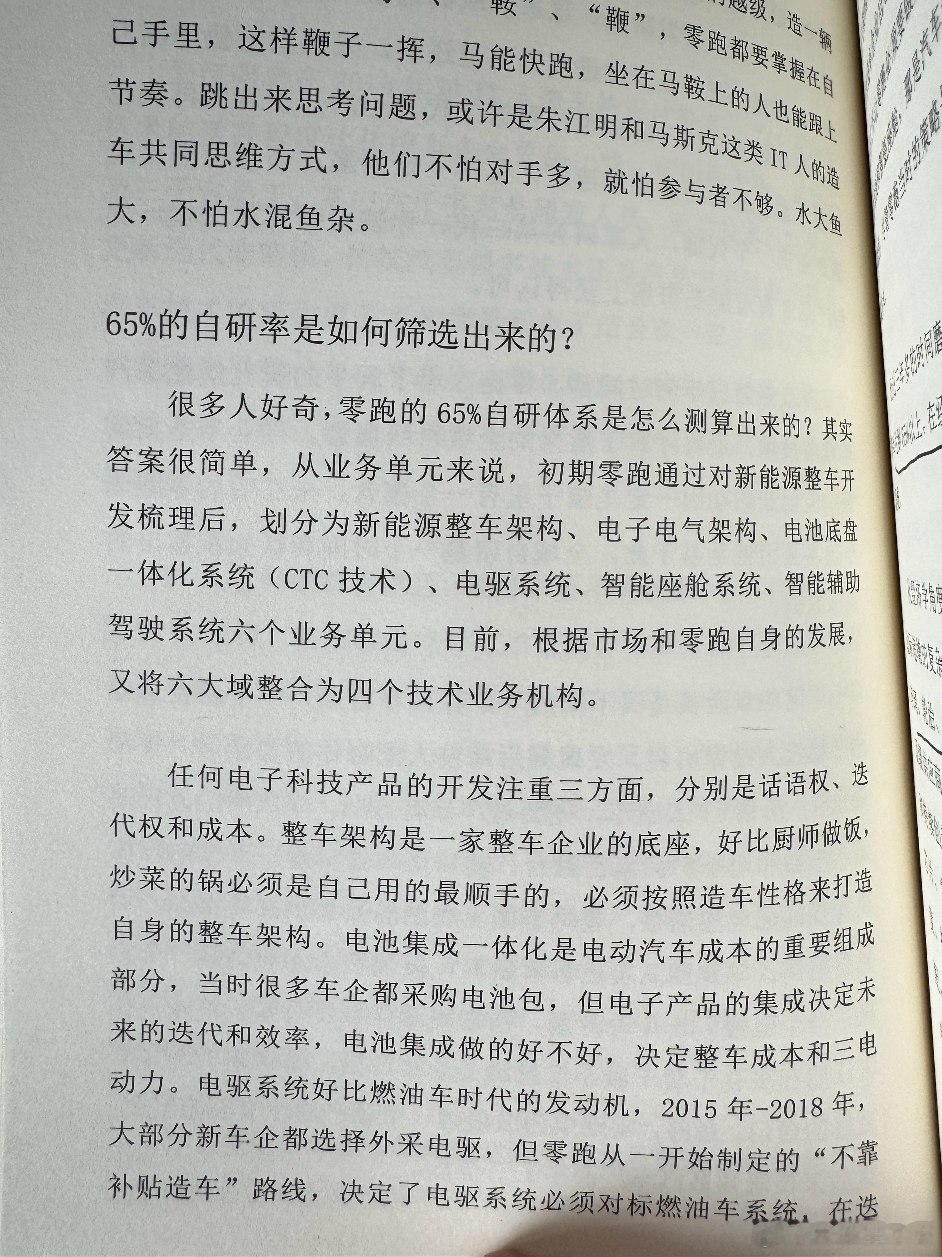 零跑2025年的自研率是65%,今年预计能到70%,毕竟是个连前后杠,车灯座椅都能自己做的车企,图中都是他们能自己造的。北京的两家新势力自研率按这么算,大概在40%和50%,其他两个著名新势力在55%左右。其实也都还可以。 自研可以省掉供应商的15%的中间利润,开发周期和节奏也能更好。一辆十万的车能省1万出来。弊端可能就是如果想靠拖供应商货款来维持的现金流的操作就做不成了。目前看来零跑的真能做很多其他车企的供应商了,成本优势今后后越来越高。新能源汽车