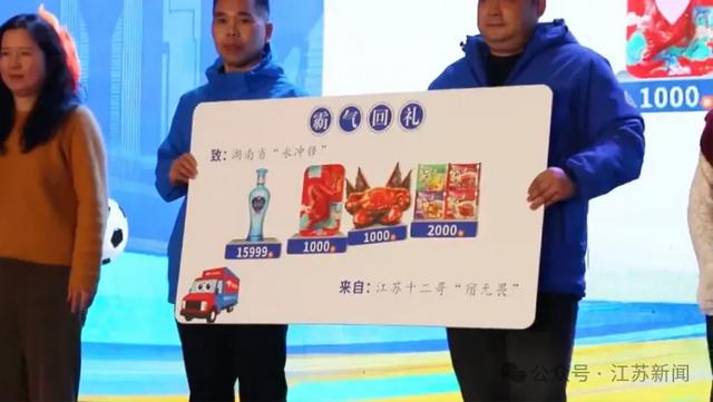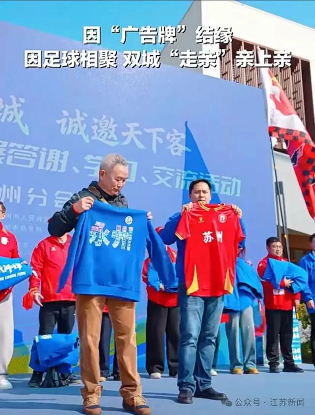 苏州也不甘示弱——早在永州夺冠时,就是首个为“十五弟”点亮祝贺灯牌的城市。这次在吴江盛家厍的球迷见面会上,两地球迷互换签名球衣与冠军帽,一句“欢迎来苏州过年”,道尽了江南的温婉与热情。除此之外,苏州本地企业代表还向永州嘉宾回赠了寓意“一缕红绸系深情”的红围巾与文创产品,苏州市民更是将现场的永州特产抢购一空。