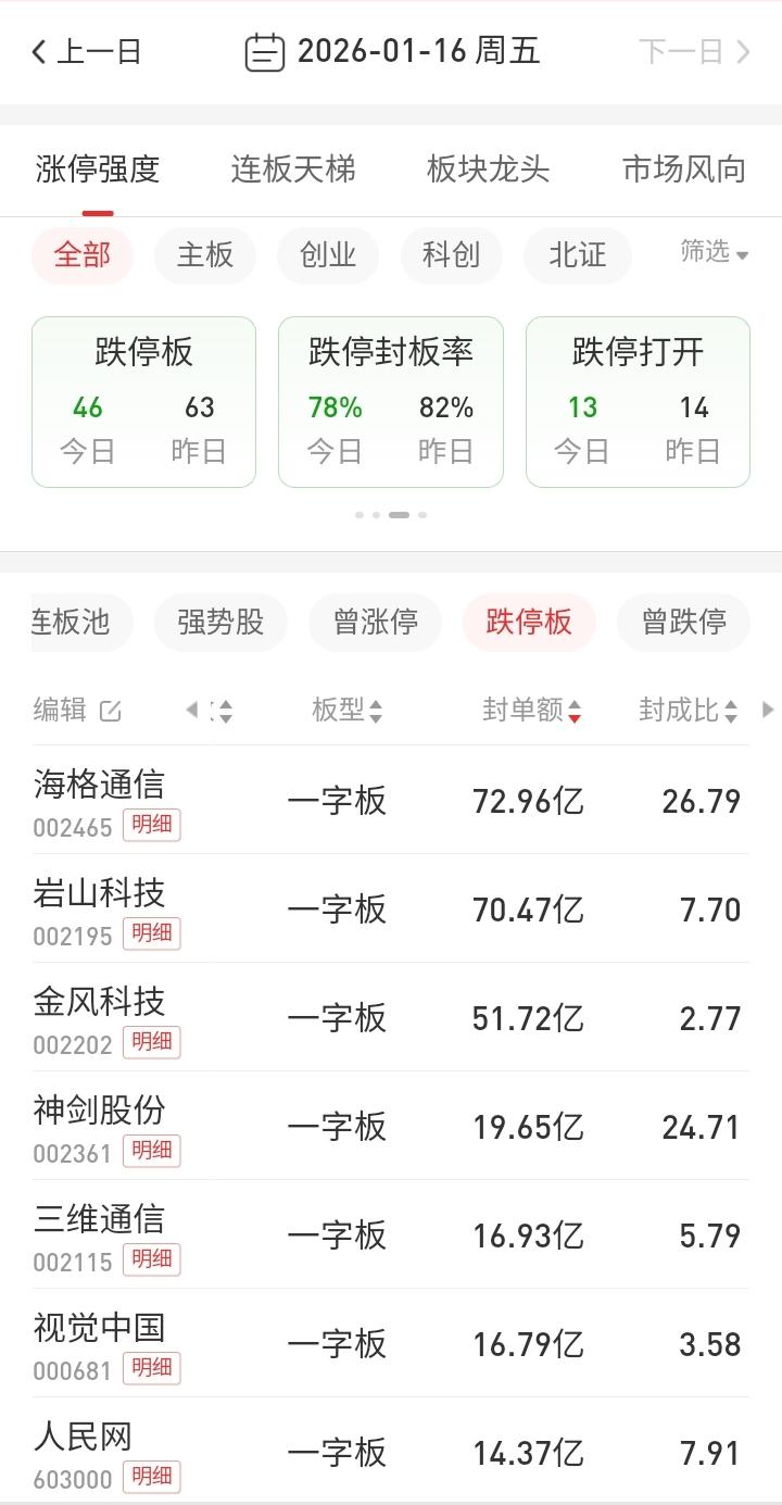 1月17日复盘:裁判强势出手,小群帝王运崩塌,短线高位情绪的一些思考! 1、这次的市场降温确实挺伤人的,特别是短线高位情绪,就如同买到一个暴雷股一样难受,连续的两天情绪崩盘,暴露出现阶段短线情绪的极大风险,这样的情绪不能以常理去看待,毕竟算是明显的裁判下场直接干预比赛,海格连续超大级别的一字封单不可能是短线获利资金所为,更不可能是散户的疯狂踩踏,总得来说海格这种表现在业绩报大雷的个股中都没有出现过,这完全是市场亮明的一个态度,就是在这种情绪下,周四小群入场的华胜还敢去强顶一字板,消闲派为首的资金还敢去做盛路的地天,而利欧午后去拉涨控异动的表现更是让裁判不得不下狠药,所以周四盘后的利欧关小黑屋就是监管延续的另一大表现,那么在情绪如此低迷的情况下,游资第二天当然是疯狂出逃了,所以我们可以看到周五竞价一出来,海格、岩山、金风前期三大容量中军继续巨量封单,三维、视觉、人民网的崩塌就是游资看到了极大的风险抢跑,所以在商业航天出现明显修复时,走出地天且相对低位的盛路开盘低开后迅速被按,周四巨量顶一字的华胜竞价直接被按在水下,这些都是受到了明显情绪的影响,所以在市场短线持续降温下,这些聪明资金是最快抢跑的,而慢一步的散户却成了降温的牺牲品! 2、小群这一路的帝王运太顺利了,从合富的格局,到航发的合力,东百的翘板,这些都没有特别大的问题,毕竟这是席位溢价的追随,这些都是相对理性的,但是之后永辉开始顶一字,到之后的通宇、航电、雷科,这些至少在市场中是有分歧的,并没有那么一致,反而出现了资金持续跟随买单,但是从鲁信开始,量化开始巨量资金狂顶先手,只要是盘子小的,直接不给机会,之后的三维、华胜都是如此,但是因为容量标的金风、海格硬顶走出过持续吃肉行情,所以资金的认可度非常高,就是在这样的情绪下,脑机接口的岩山、创新和熊猫走出了类似表现,再到AI方向的利欧、美年,这样的市场是非常不健康的,而且多数融资盘疯狂硬顶,走出了非常强的赚钱效应,但是这样的高潮仅仅是小部分人的高潮,很多抱着打不过就加入心理的散户想获得入场券就非常难,所以被迫去接力岩山、金风、海格这些相对容量的标的,或者去20cm的蓝色、易点、天龙套利,但是这些个股毕竟是短期暴涨的方向,市场持续出现降温信号时,只要大机构主动砸盘,后果就是像如今的一地鸡毛! 3、这一轮市场降温的始作俑者毫无疑问是海格了,说实话海格周三板上承接是非常漂亮的,按道理它也没有挑战严重异动,但是市场就是选择了它作为杀鸡儆猴,原因是商业航天的退潮趋势更为明显,而它和三维是在周三仅存的高辨识度小群概念股,三维连续一字上来,直接一字A杀对于整个市场环境影响巨大,所以高位爆量的海格成为了降温的牺牲品,本来竞价前半段并没有特别大的负反馈,但是20分之后,突然出现的20多亿封单令人措手不及,这样的表现绝不是散户所为,也不是短线游资所为,很明显是裁判在亮肌肉了,那么接下来的抛盘更多的是游资和散户的疯狂踩踏了,所以从情绪上看,海格周四的竞价被闷是这轮短线情绪崩盘的根本原因所在,然后才是金风、岩山开盘的迅速被核按钮,因为游资是非常敏感的,这种环境下抢跑就成了必然,而海格成为了被闷最多资金的火葬场,从这两个一字跌停的成交额看,它是少的可怜,几乎是游资散户一锅端的典型! 4、周五的龙虎榜陈小群华胜主动砸盘兑现,金风三日榜可以看到8亿多的卖出,很明显有超6亿筹码是在14日未出榜那天卖出的,从历史统计上看,金风陈小群大概率出清了,再加上华胜也是明显的兑现,三维断板那天是做了小维护,之后直接一字跌停,大概率出来部分资金,但是大头应该依然被套,最惨的可能是海格了,从情绪上看,他应该也是大部分仓位没有出来,虽然有人说解放碑是它另一个席位,但是毕竟无从考证,说实话小群在这一轮牛市中的帝王运一直非常好,但是奈何裁判进场裁决,从他兑现金风和华胜的操作思路看,很明显也是对市场短线降温的情绪的畏惧,也许在今后一段时间,他的席位大概率会消失一段时间了,毕竟从帝王群到现在的形象坍塌,也就是几个交易日而已! 5、短线情绪的杀跌从情绪上应该不会持续蔓延,毕竟连续两天批量跌停,海格、岩山、金风这种量的封跌停真的是活久见,当初闻泰那么大的利空也就两个一字跌停,再加上周末两天的冷静期,海格虽然周一未必会开板放量,但是如果能够出现一定的量能放大还是大概率的,从情绪的冰点看,海格最多还有一个一字跌停,对于海格,如果竞价就有明显的抄底资金,是可以期待下短期的小幅反弹的,但是如果是盘中跟随板块去修复,反而没有特别大的期待了! 所以从情绪上看,海格会是资金的情绪点,它的量能变化代表着短线资金的态度,也是市场短线止跌的基础!这也是为什么周五早盘商业航天出现修复,在海格毫无反应的情况下被无情扼杀的根本原因所在! 本文只限于分享和交流,不构成投资建议,股市有风险,投资需谨慎!