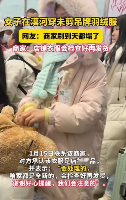 1月16日,黑龙江漠河,一男子旅游时突然觉得一名排队的女生不错,可走到前面一看,却瞬间下头,因为她的羽绒服上面竟然挂着一个大大的吊牌,男子猜测大概率这是准备回去退掉的,有意思的是,这个事火了后,羽绒服商家也在网上看到了这件衣服。 漠河这两年是真的火,2025 年全年接待了三百多万人次的游客,旅游收入突破三十三个亿,就连寒冬腊月里,核心景区依旧人潮涌动。 小李也是被 “这个冬天总要来趟漠河” 的话题吸引来的,想体验一把在极寒中追极光、踩积雪的感觉。 排队的时候,他注意到前面站着个女生,同款的极地款羽绒服穿在她身上很合身,头发被风吹得轻轻贴在脸颊。 随着队伍慢慢往前挪,小李离女生越来越近,可当他看清女生背后的景象时,刚才那点好感瞬间消失得无影无踪。 女生穿的那件浅粉色羽绒服背后,竟然挂着一个巴掌大的白色吊牌,上面印着品牌logo和尺码信息,在凛冽的寒风中来回晃动,和周围游客利落的穿着显得格格不入。 吊牌的绳子系得很牢,不像是不小心忘记剪的样子,倒像是特意留着的。 小李心里犯起了嘀咕,漠河这天气,出门恨不得把自己裹成粽子,谁还有心思留着吊牌添麻烦?大概率是买了准备旅游结束就退掉,相当于免费穿了一趟,这算盘打得也太响了。 他忍不住掏出手机,远远拍了张照片,随手发到了社交平台上,配文 “漠河旅游遇到的迷惑行为,穿新羽绒服不剪吊牌,这是准备穿完就退吗?” 没想到这条随手发的动态,短短几个小时就炸了锅。网友们的评论更是炸开了锅。 有人调侃 “这要是让商家刷到,估计得连夜扛着火车跑,心都得碎成饺子馅”,还有人吐槽 “这操作简直把七天无理由退货玩成了免费租赁业务,学到了学到了”。 很快,这条不起眼的动态就冲上了微博热搜,话题 漠河游客穿带吊牌羽绒服疑似白嫖 的阅读量半天就破了 2.1 亿,讨论量直接干到了 180 万。 评论区里大家伙儿吵得热火朝天,有人分享了自己见过的离谱退货案例,说之前有个网友买了套高档滑雪服,去雪场疯玩了三天,回来把雪渍擦干净就退货,商家检测出衣服上的雪场专属雪渍,硬是没给退,结果还被那网友倒打一耙说商家刁难人 更有意思的是,不少网友开始科普 “试用式退货” 的隐性成本:一件羽绒服来回运输的邮费就要几十块,商家收到退货后还要二次检测、清洁,有些甚至只能打折处理或者直接销毁,这些成本最后其实都分摊到了其他消费者身上。 就在网友们讨论得热火朝天的时候,涉事的羽绒服商家也在网上刷到了这条视频。商家客服后来回忆,当时是运营人员在刷热搜时看到的,一眼就认出了自家的产品。 那个吊牌样式是品牌专属的,去年冬天才投入使用。一开始还以为是网友恶搞,仔细看了视频里的衣服细节、吊牌字体后,才确认这件羽绒服确实是从自家店铺售出的。 面对突如其来的热议,商家很快在社交平台做出回应,语气平和又实在:“感谢网友们的好心提醒,已经关注到这件事了。 咱家所有衣服都是全新发货的,发货前都会仔细检查,吊牌、包装这些都没问题。后续我们会进一步加强质检环节,确保商品送到消费者手里是完好的。” 商家还补充说,不会采用密码锁、巨型吊牌这种争议性的反制手段,还是相信大部分消费者都是诚信购物的。 这个回应得到了不少网友的认可,有人留言 “商家态度挺好的,没有直接指责消费者”,也有人建议 “可以设置合理的退货门槛,避免被别有用心的人钻空子”。 这个小插曲还让不少法律博主站出来科普,说七天无理由退货是消费者的合法权益,但要是抱着占便宜的心态,穿完衣服再故意退货,那性质就变了。 要是退货的金额比较大,还可能构成诈骗罪,之前就有个小伙子,靠着反复买衣服穿完退货牟利,最后被判了刑,这可不是闹着玩的。 漠河当地的导游也站出来说话了,他表示每年冬天都有不少游客低估了漠河的寒冷,到了之后才临时买羽绒服,“有些游客确实会考虑成本,想着短期穿一次没必要买太贵的,就动了退货的心思”。 但他也提到,大部分游客还是很诚信的,毕竟出来旅游图的是开心,没必要为了一件衣服纠结。 事件发酵到最后,那位穿未剪吊牌羽绒服的女生始终没有出面回应,没人知道她留着吊牌的真正原因。 是真的忘记剪了,还是如网友猜测的准备退货,或者有其他不为人知的理由,都成了未解之谜。 如今的漠河,依旧是那个吸引着无数人前来 “找北” 的极寒之地。新增的冰雪赛车、极地漂移项目让游客们玩得尽兴,升级后的最北邮局依旧排着长队,大家在零下三十度的寒风里,感受着纯粹的寒冷与温暖。 对于这件事,您有什么想说的吗?欢迎评论区留言讨论。 信源:2026-01-16——《女子在漠河穿未剪吊牌羽绒服,网友:商家刷到天都塌了,商家:店铺衣服会检查好再发货》