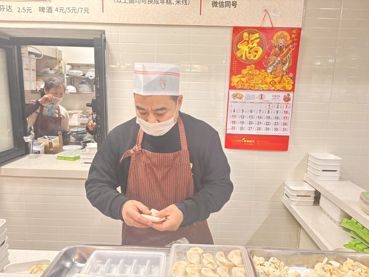 中午时分,不少居民会在邵咏明这里点几个炒菜解决午饭。87岁的陈大伯还带了一小壶酒:“家里做菜麻烦,就在这里吃了十多年,小邵对我来说就跟家里人一样。”