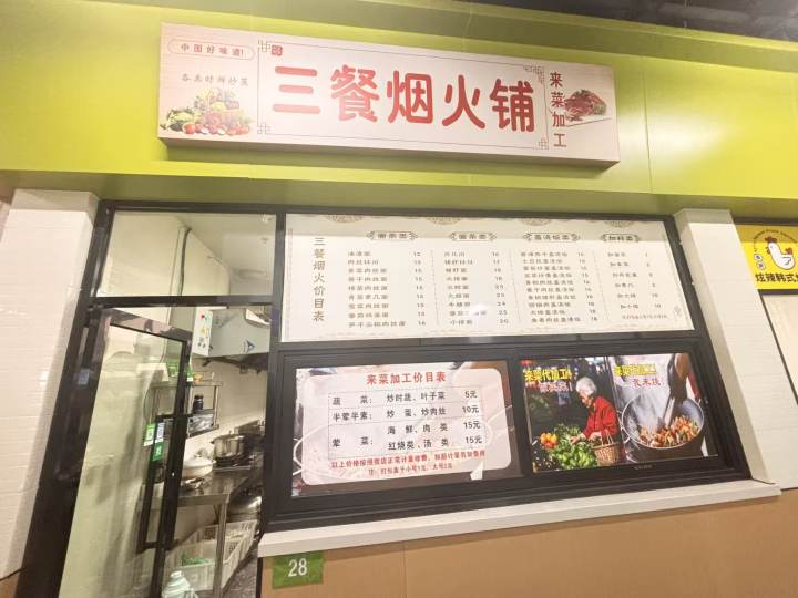 在邵咏明店铺的旁边,有一家新开起来的“三餐烟火铺”,主营来菜加工和餐饮制作。