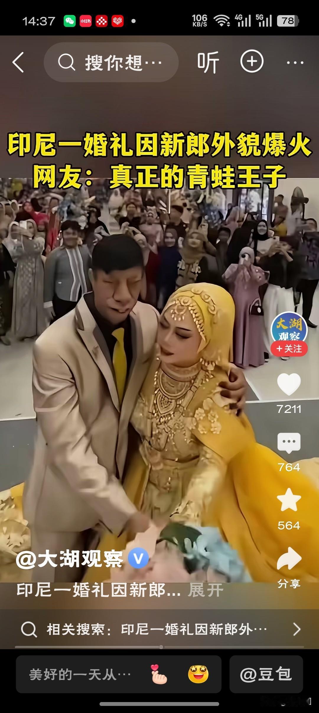 印尼婚礼视频突然刷爆全网,新郎被贴上“马脸”、“青蛙王子”等标签,有些评论比较刺