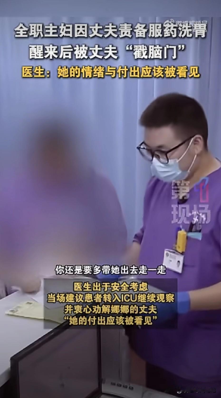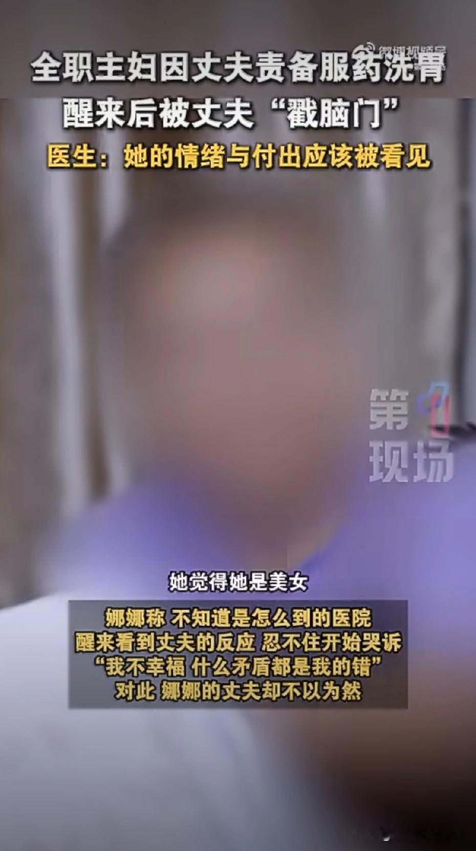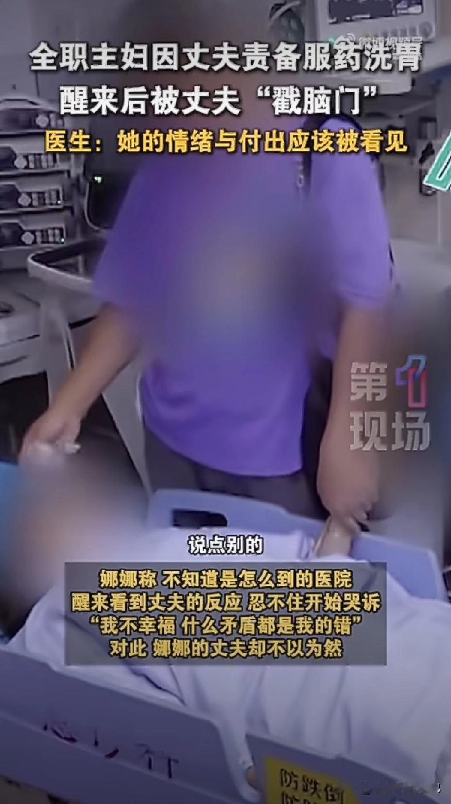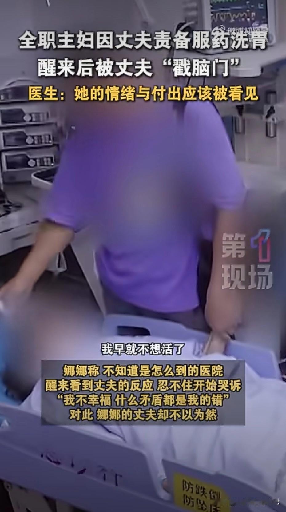 “你就不容易死,回不去了。” 这是全职妈妈娜娜在ICU睁开眼,听到丈夫的第一句“问候”。 不是“你疼不疼”,不是“吓死我了”,而是一根食指戳在脑门上,像戳一块怎么都煮不烂的抹布。 20 年婚姻,她连“来,把碗放水池”都没听过; 掉在地上的袜子、孩子的成绩单、老人血压高,全是她的事。 一句抱怨,换来的是丈夫“你觉得你是美女,嫁给我可惜了”的冷笑。 于是,她吞了 30 多片安眠药,只想睡个不用洗碗的觉。 洗胃机轰隆隆响,丈夫在旁边刷手机,抬头问医生: “多久能出院?家里没人做饭。” 这不是摆拍段子,是今天深圳某医院的真事。 为什么总有人把“全职主妇”翻译成“闲着没事”?却看不见 24 小时待机、零工资、零社保、零升职空间。最狠的“职场 PUA”,原来在自己家。 有人说她“玻璃心”, 可玻璃天天被石头砸,也会碎。 真正结实的,是那位 20 年没进过厨房的男人。心硬得堪比泰山石,这种无视付出的冷漠,比打骂还诛心。 他一面心安理得地享受她的伺候,一面把她说得一无是处,生活所有的不如意都砸在她身上。更残忍的是,她服药被救回后,他冷飕飕地甩一句“你命真硬”,没有半点疼惜,只有咬牙切齿的恨。这哪是伴侣,分明是索命的冤家。 婚姻不是独角戏,不是你倾尽所有,对方就能理所当然地吸血。碰上这种把尊重当垃圾、把精神虐待当日常的人,别再咬牙硬撑,先保住自己的心跳和尊严,才是头等大事。 好的婚姻,是暴雨天一起撑伞,让你安心靠岸;而不是推你入海,还嫌弃你溅起的水花,湿了他的鞋;遇到只会消耗你的人,立刻止损,就是救自己一命! (图源:@第一现场 )