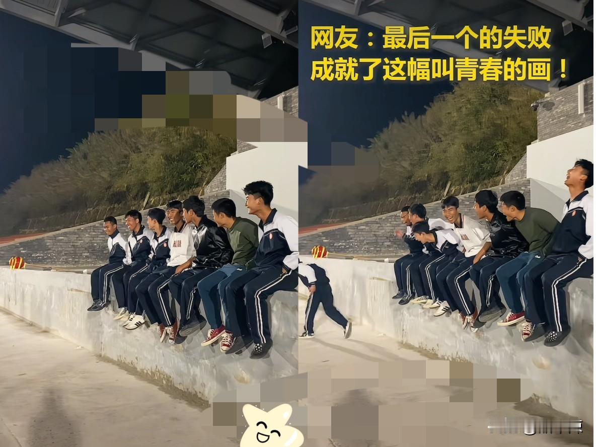 “没想到上人民日报了!”近日,云南,普洱七名高中男生下晚自习,准备回宿舍,经过操场,有一段台阶,想比谁能跳坐上去! 前六个男生双手插兜,箭步起跳、转身落座,动作丝滑得像开了倍速,帅得让人忍不住叫好。 可轮到最后那位,卯足了劲冲刺,结果一个趔趄,结结实实磕在了台阶边缘,揉着屁股龇牙咧嘴跑开的样子,把旁边人逗得直不起腰! 谁能想到,这一跤竟成了全场高光!都说青春要光鲜亮丽,要事事完美,可真正戳中人心的,偏偏是这些笨手笨脚的小失误。 那些没耍成的帅、没说出口的话、没做成的事,才是青春最鲜活的注脚,比任何完美瞬间都让人难忘! 正是这一摔,把普通的校园日常,变成了全网共鸣的青春标本! 致,我们回不去的青春!