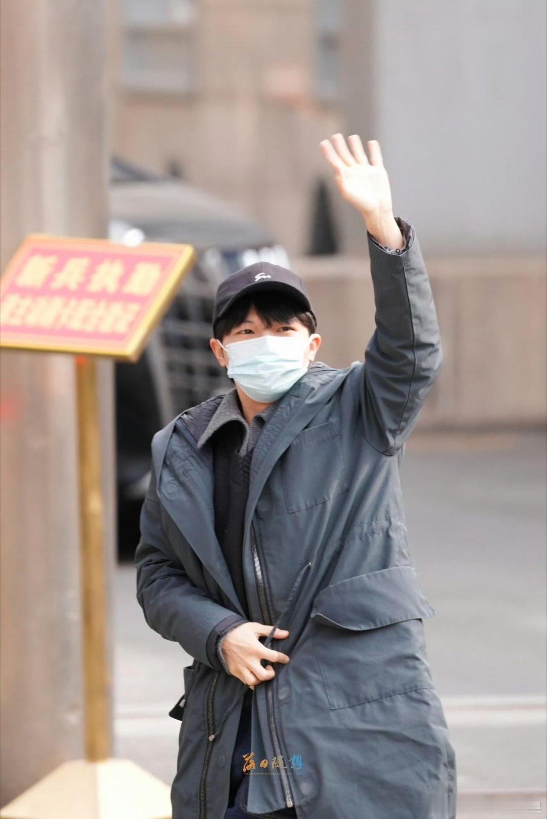 周深又穿着春晚战袍来了 深深穿着他压箱底的羽绒服现身央视彩排现场了,跟大家打招呼