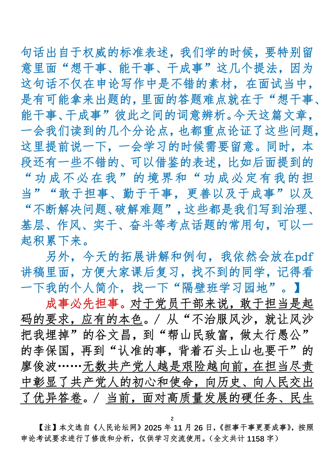 如何抄写:每日抄写文章发在“公考隔壁班王老师”账号,红色字是重点句和结构句,黑色字是正文,蓝色字是解析,大家抄写时不必抄蓝色字。建议先通读全文,做到心中有数再开始抄写,效果会更好。 关于文章:抄写文章来源于人民日报,但每篇文章我都根据申论考试要求进行了修改:一是重写或修改开头、结尾;二是统一段首句句式结构;三是调整段落字数,使文章结构更均衡;四是简化复杂长难句,使之更具可模仿性。每篇文章无论修改多少,都是基于申论考试要求,毫无对人民日报文章品评之意。(此处致敬人民日报)