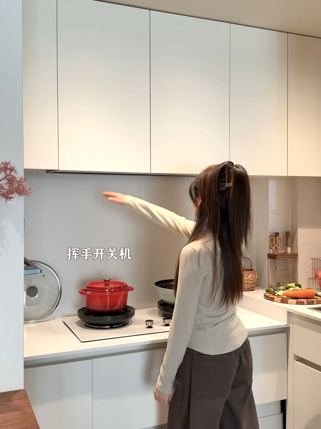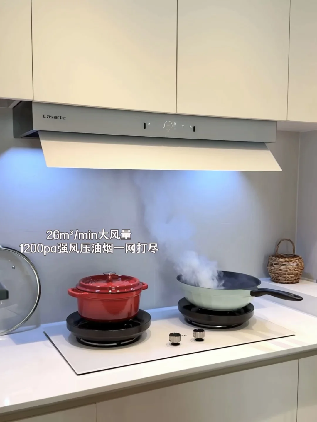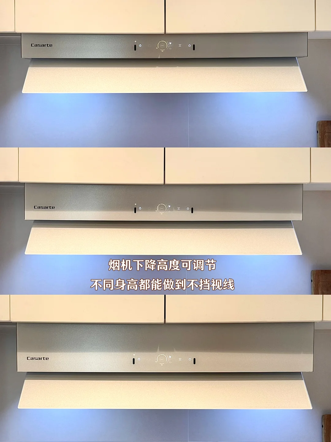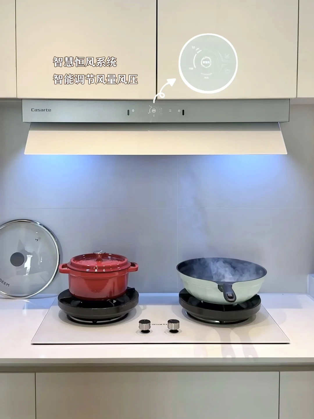 嗨这里是小粥80平的小家 房子不大,但布局很合理且实用 - 建筑面积96平,套内80平 历经两次大改造 依然保留了敞亮实用的开放式设计 - 我家厨房不到4平,原本是封闭布局,一个人待着都感觉压抑 改成开放式之后,两个人在里面忙活也轻松自如 因为厨房朝北,采光比较差 所以厨房台面、墙面、柜子,就连烟机灶具也统一成干净的白色 - 之前的烟机突出 让本就狭窄的厨房看着显拥挤杂乱 现在这款卡萨帝致境Air油烟机,不用时可以完全上升藏进柜子里 正面完全隐藏,底部与柜门齐平,仿佛“隐形”了一般 日常看着整洁明亮,整个厨房都通透了不少 - 做饭时一点燃灶具,烟机就会自动下降 我跟家属一个身高180一个身高158 之前的烟机很难让我们都能很舒服地烹饪 致境Air能通过手机APP自定义下降高度,0-15cm自由调节,很好地解决了这个问题 - 住进这个家之后,我下厨的热情越来越高,学会了各种爆炒菜式 之前很多朋友问,开放式厨房不怕油烟吗? 这种升降设计加上135°广角能有效拢住油烟 26m³/min的爆吸力,搭配1200Pa强风压 油烟还没来得及扩散就被一网打尽,别说跑到客厅,连扑面而来的机会都没有 - 之前饭点老是出现排烟困难的现象 现在这个问题也解决了,内置的智慧恒风系统 实时感知油烟量和公共烟道压力,自动调节风压 再也不怕油烟倒灌了 运行起来也很安静,只有52分贝,比聊天声音还小 清洁更是省心,盐晶纹玻璃面板一擦即净✨ 磁吸式油网拆卸轻松,放到洗碗机里就能洗的干干净净 - 配套的同系列燃气灶同样简约高级 5.2kW的大火力,做饭又快又香 每天回家轻松搞定几个家常菜,温暖健康又省时 这款烟灶除了我家这款海盐白,还有博卡灰这个颜色可选 不同风格的家都能适配 - 这就是我的小厨房,也是家里充满烟火气和幸福感的小角落 如果你也喜欢通透亮堂的开放式厨房,欢迎参考我家的设计思路与好物选择呀~ ✨