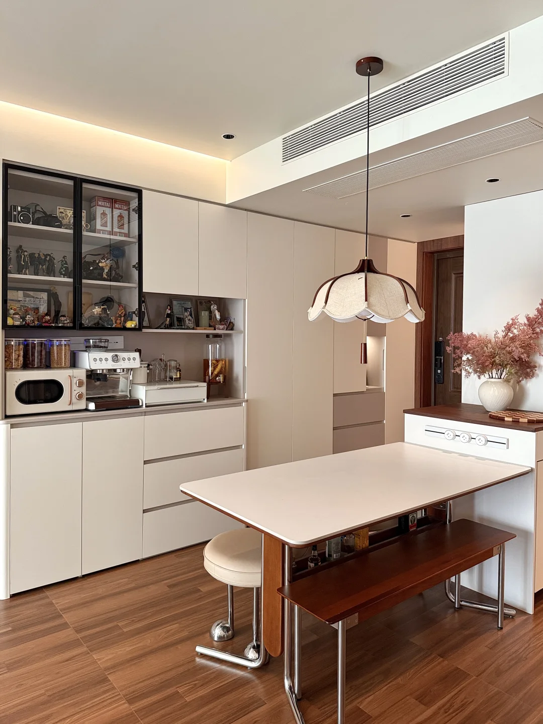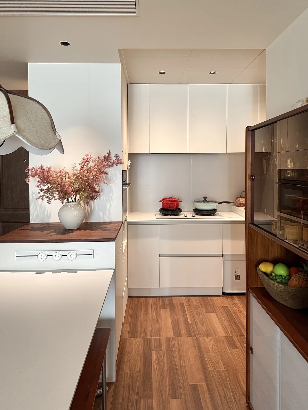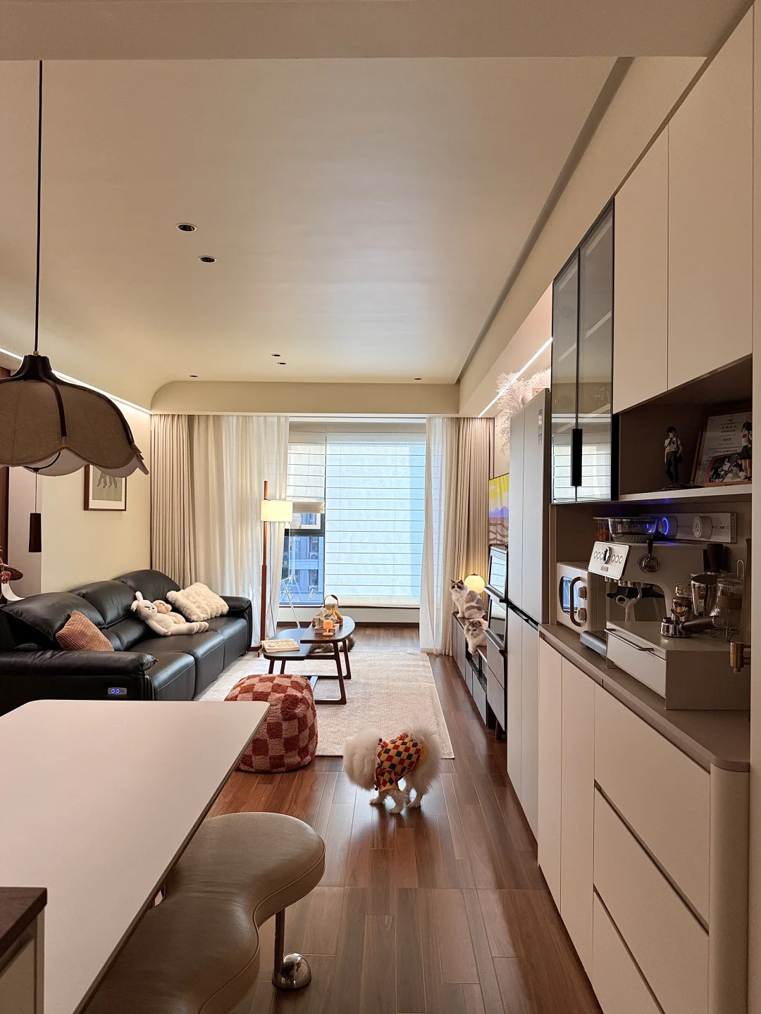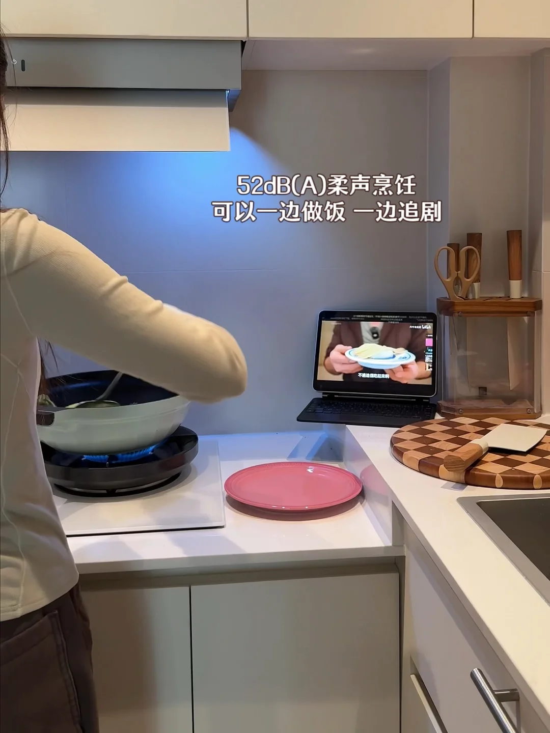 嗨这里是小粥80平的小家 房子不大,但布局很合理且实用 - 建筑面积96平,套内80平 历经两次大改造 依然保留了敞亮实用的开放式设计 - 我家厨房不到4平,原本是封闭布局,一个人待着都感觉压抑 改成开放式之后,两个人在里面忙活也轻松自如 因为厨房朝北,采光比较差 所以厨房台面、墙面、柜子,就连烟机灶具也统一成干净的白色 - 之前的烟机突出 让本就狭窄的厨房看着显拥挤杂乱 现在这款卡萨帝致境Air油烟机,不用时可以完全上升藏进柜子里 正面完全隐藏,底部与柜门齐平,仿佛“隐形”了一般 日常看着整洁明亮,整个厨房都通透了不少 - 做饭时一点燃灶具,烟机就会自动下降 我跟家属一个身高180一个身高158 之前的烟机很难让我们都能很舒服地烹饪 致境Air能通过手机APP自定义下降高度,0-15cm自由调节,很好地解决了这个问题 - 住进这个家之后,我下厨的热情越来越高,学会了各种爆炒菜式 之前很多朋友问,开放式厨房不怕油烟吗? 这种升降设计加上135°广角能有效拢住油烟 26m³/min的爆吸力,搭配1200Pa强风压 油烟还没来得及扩散就被一网打尽,别说跑到客厅,连扑面而来的机会都没有 - 之前饭点老是出现排烟困难的现象 现在这个问题也解决了,内置的智慧恒风系统 实时感知油烟量和公共烟道压力,自动调节风压 再也不怕油烟倒灌了 运行起来也很安静,只有52分贝,比聊天声音还小 清洁更是省心,盐晶纹玻璃面板一擦即净✨ 磁吸式油网拆卸轻松,放到洗碗机里就能洗的干干净净 - 配套的同系列燃气灶同样简约高级 5.2kW的大火力,做饭又快又香 每天回家轻松搞定几个家常菜,温暖健康又省时 这款烟灶除了我家这款海盐白,还有博卡灰这个颜色可选 不同风格的家都能适配 - 这就是我的小厨房,也是家里充满烟火气和幸福感的小角落 如果你也喜欢通透亮堂的开放式厨房,欢迎参考我家的设计思路与好物选择呀~ ✨