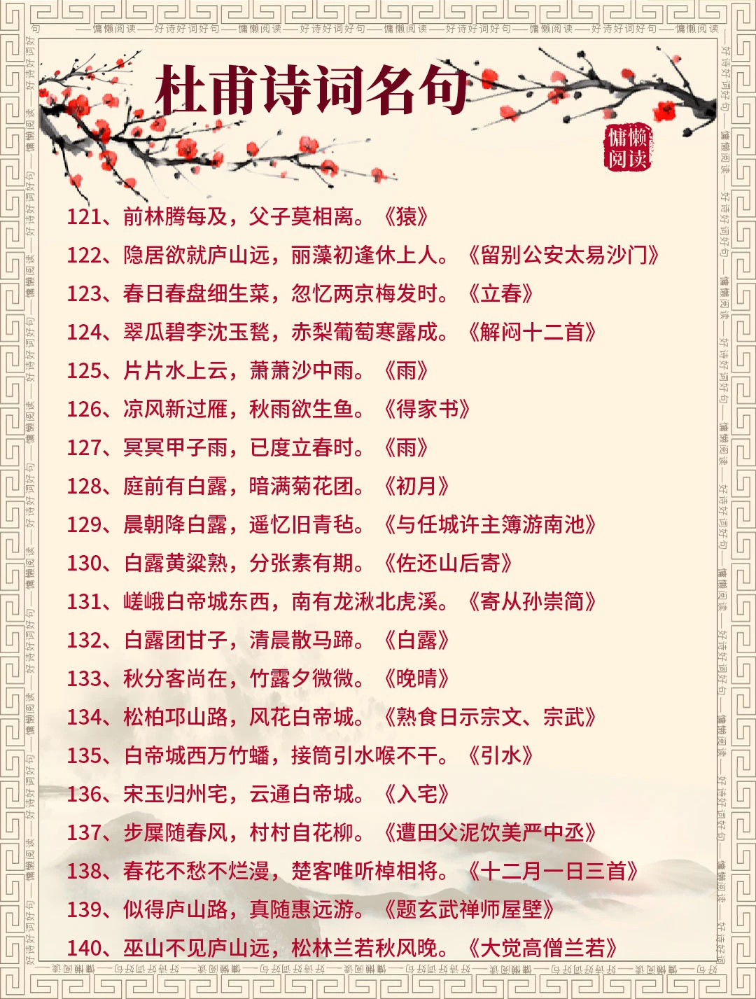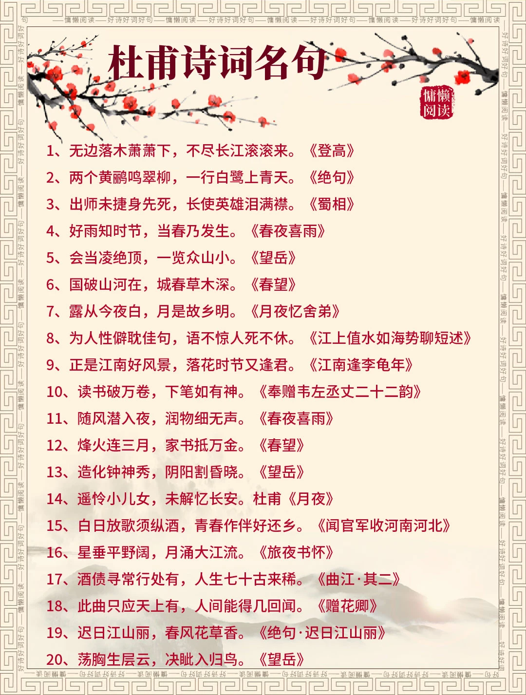 诗圣杜甫200句经典诗词(值得收藏)