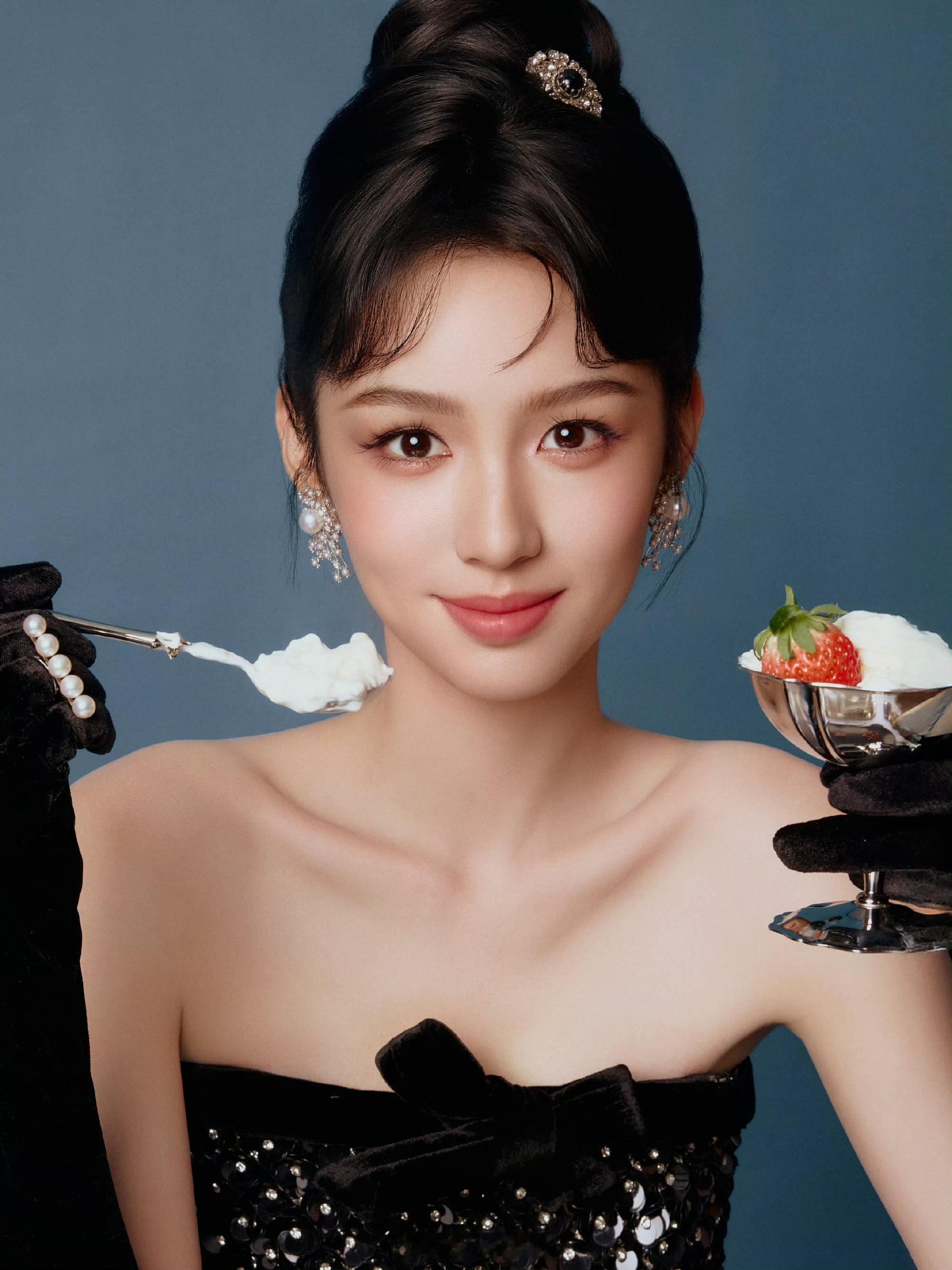 黑色碎钻抹胸裙闪耀迷人——周也。每日明星美图分享