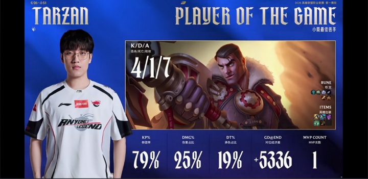 野距!Tarzan杰斯完美表现助AL首局翻盘BLG并拿下对局MVP!
