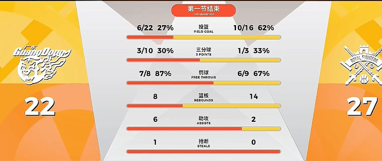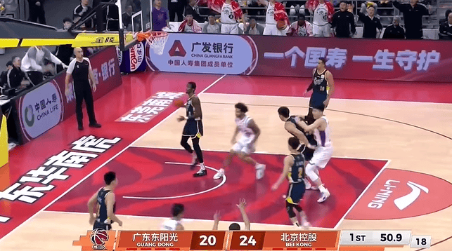 虎扑01月17日讯今日CBA常规赛,广东主场对阵北控。首节战罢,广东22-27落后北控。