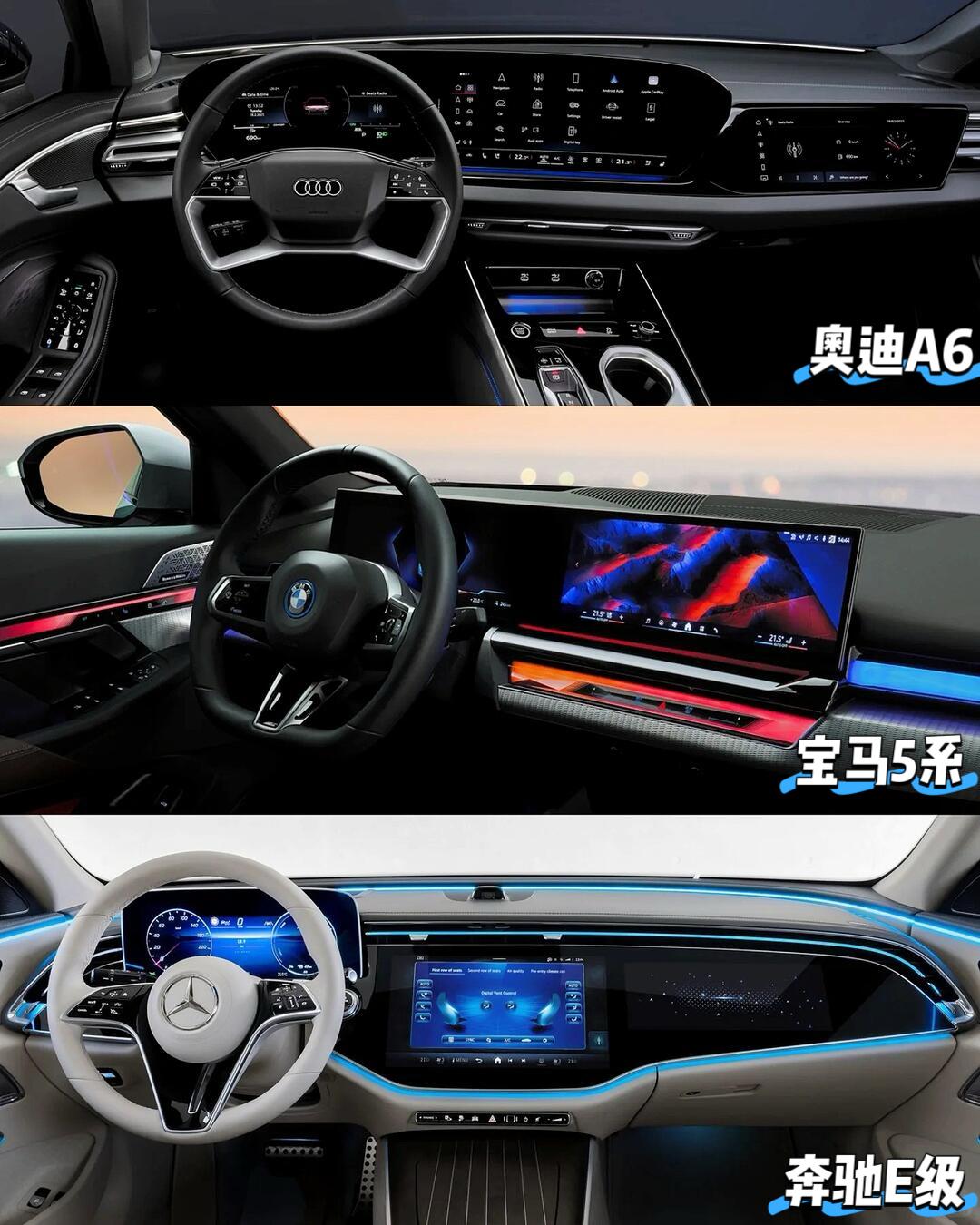 从内饰设计风格 可以看出56E各自品牌调性 奥迪重回科技风 宝马挺进直男风 奔驰继承豪华风