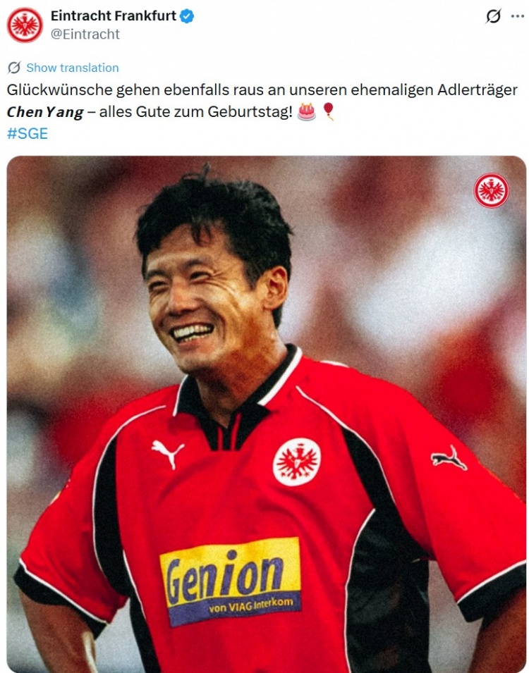 直播吧1月17日讯今天是中国足球名宿杨晨52岁生日,前东家法兰克福也晒照为其送上生日祝福。