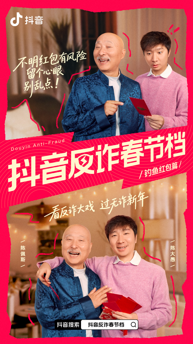 春节临近,各类诈骗活动也进入高发期。为提升公众防骗意识,抖音在春节前推出“反诈贺岁系列短视频”,邀请陈佩斯、朱时茂、董宇辉、寇振海、唐国强、月亮姐姐、董浩、张凯丽等知名人士参与拍摄,以剧情化形式演绎常见诈骗手法,帮助用户识别陷阱、守住钱包。
