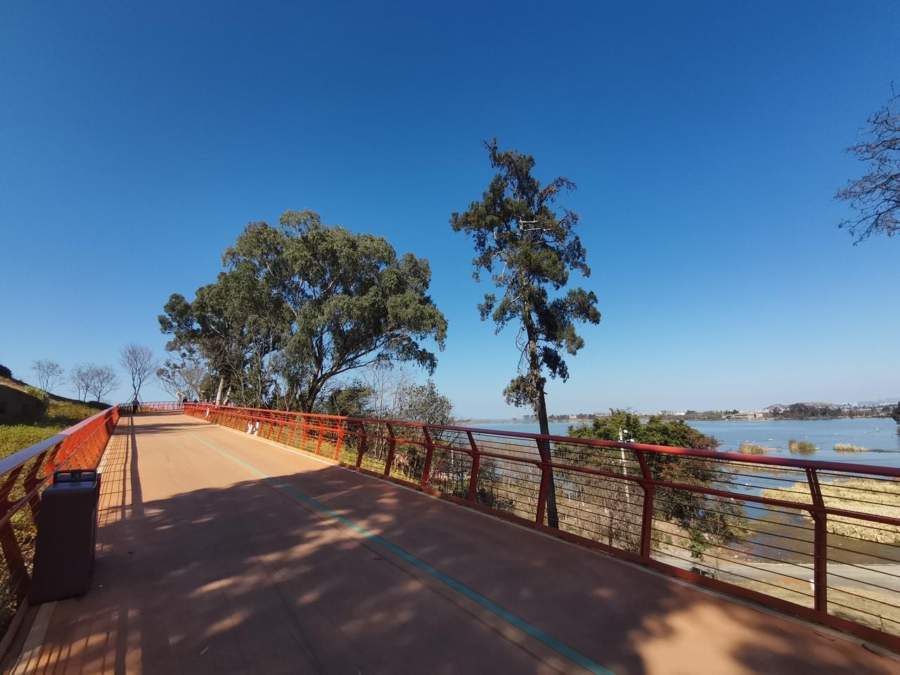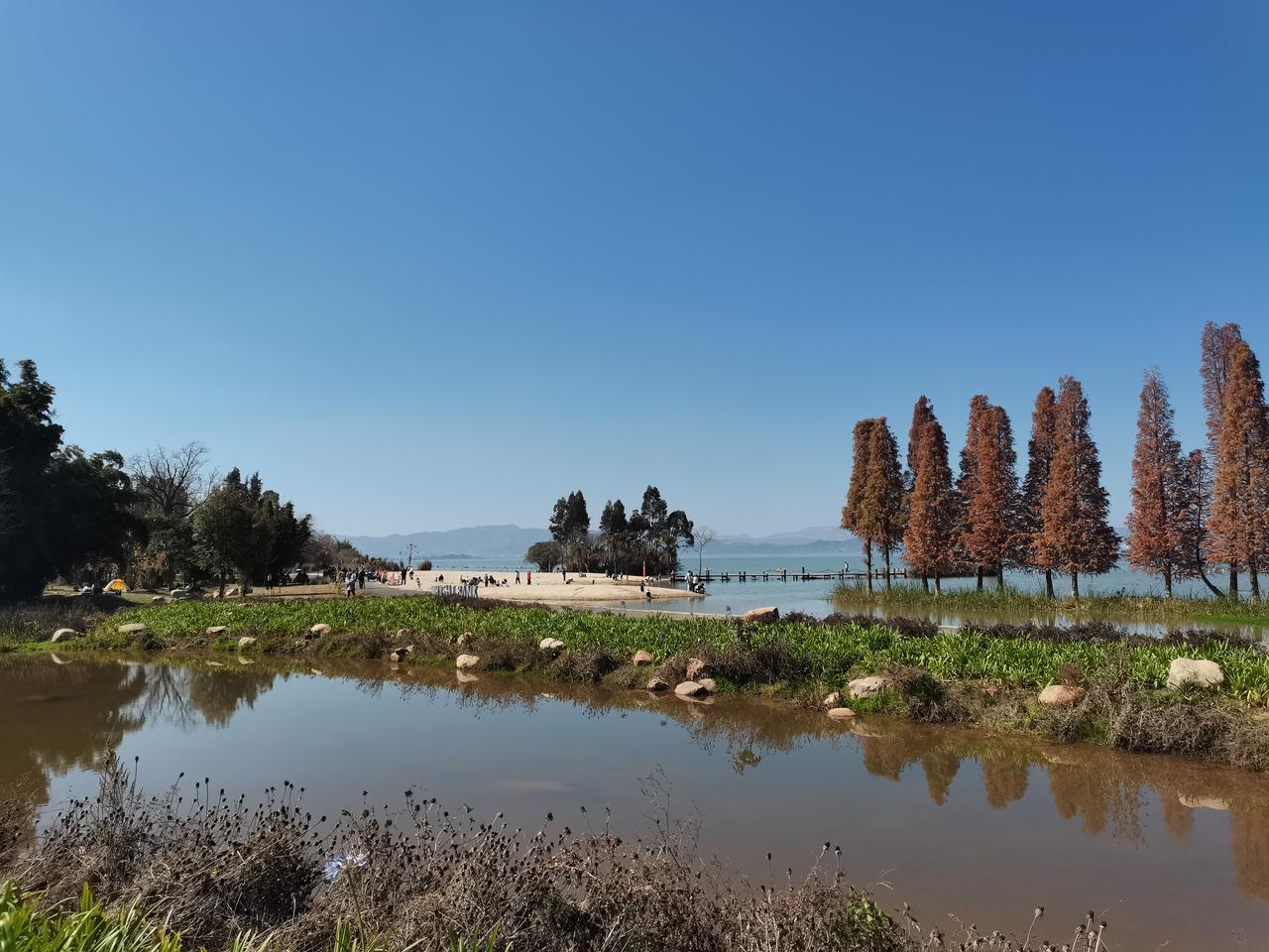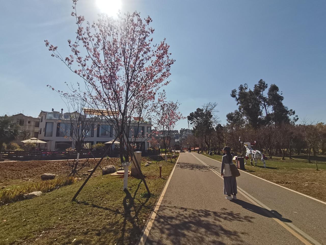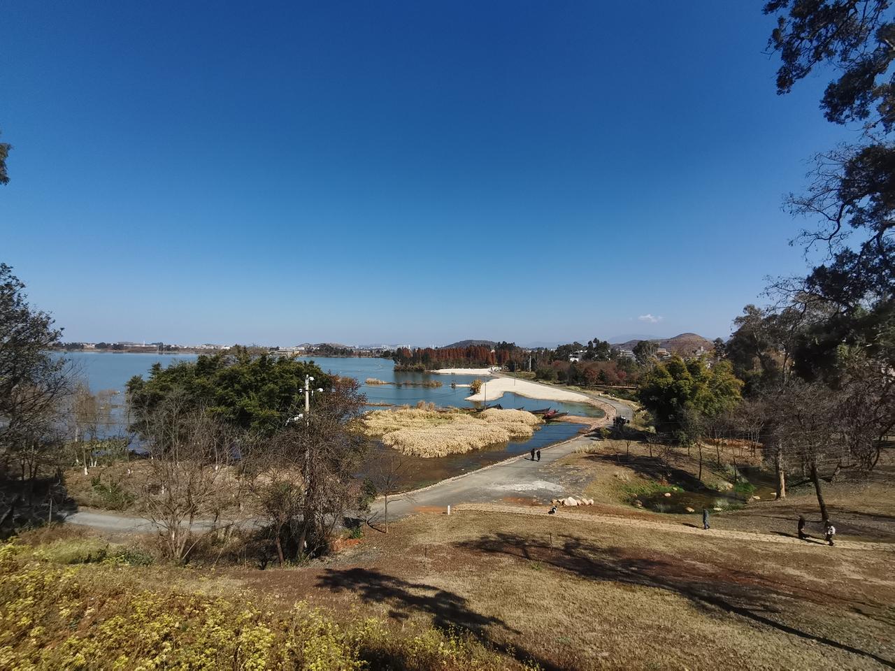 昆明的滇池绿道就是昆明最豪奢的一个超级景观,没有之一。 这个景观长达七十多公里,把整个滇池东岸的湿地公园一线串联,也把多个特色渔村连成一线,再加上烟波浩渺的滇池做背景,山、河、湖、草、田、村、林融为一体,构成了一个无以复刻的超级景观。 冬季本是这个景观四季里最不讨巧的一个季节,但得益于云南得天独厚的气候优势,滇池绿道还是能让游人行于其上有心旷神怡之感。 对徒步及骑行爱好者而言,冬季还能找到滇池绿道这样一个蓝天暖阳、气温舒适、和风轻拂、风光怡人、空间阔大的锻炼场地,真是老天爷的恩赐啊!