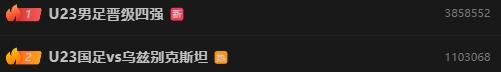 霸榜!U23男足晋级冲上热搜第1,前十热搜中U23男足独占五条!