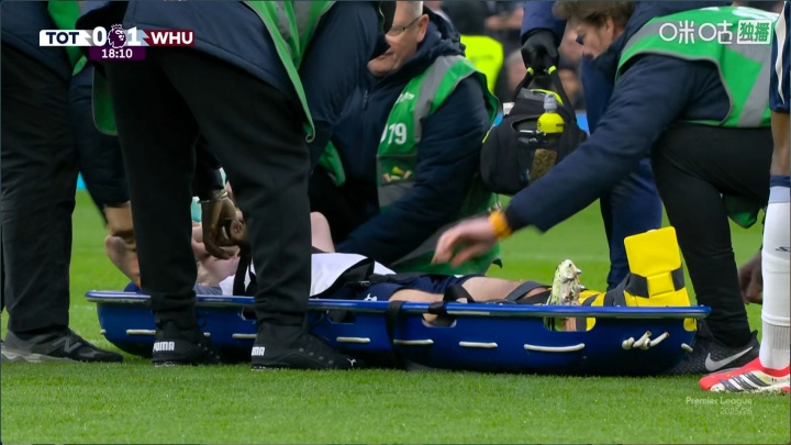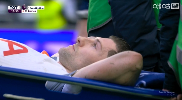 比赛第18分钟,本·戴维斯在铲抢鲍文时自己出现伤情,随后他被担架抬离球场!
