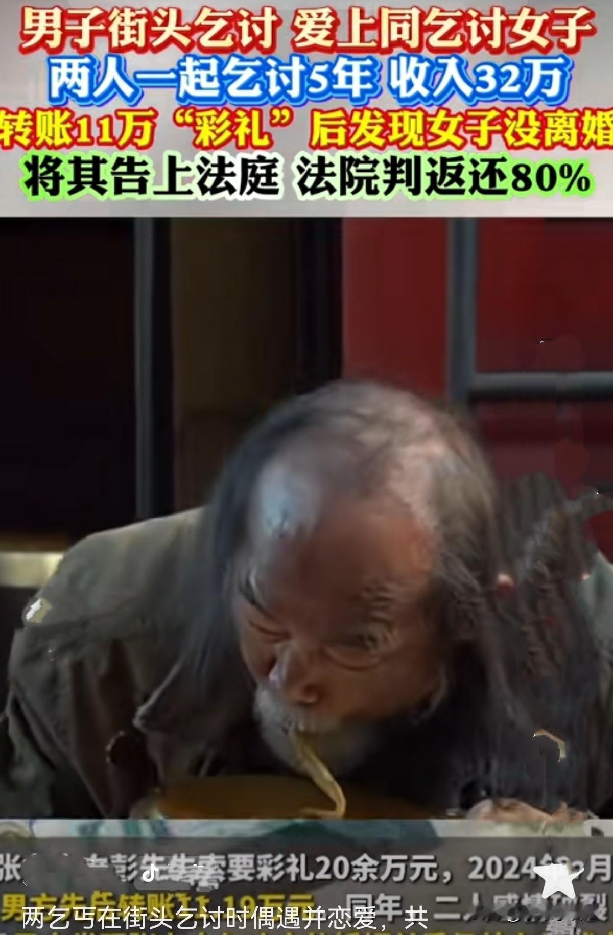 宁夏固原,男子离异,独自来到青海西宁街头乞讨,与来自宁夏的乞讨女子相遇,得知她也离婚,两人惺惺相惜,建立了恋爱关系同居在一起。而后两人共同乞讨为生。4年后,女子索要彩礼20万,男子先后转账11.19万后,两人竟然感情破裂分手,男子认为她是骗婚,要求退回彩礼钱,女子却认为两人5年共同乞讨32万,11.19万是共同乞讨所得及保姆费,不应退还。男子一怒之下将女子告上法庭,要求退还不当得利款。法院判决让人意外! 2020年10月,青海西宁街头寒风凛冽。 来自贵州的彭先生裹着旧棉袄,蜷缩在墙角乞讨,离异后的他孤身一人漂泊异乡,靠乞讨为生。 来自宁夏的张女士,也蹒跚在彭先生曾乞讨过的街道,在一处避风拐角处想歇息会,竟与他偶遇。 两人闲聊,彭先生听张女士说与前夫离婚,无法生存,只能乞讨为生。 彭先生觉得两人境遇相似,很快就打开了话匣子,也说起自己婚姻的不幸,最后以离婚收场,自己也孤身一人。 相似的经历让两颗孤独的心迅速靠近,彼此都觉得在异乡找到了依靠。一来二去,两人确立了恋爱关系,还以夫妻名义搭伴同居,一起在街头乞讨,相互扶持着过日子。 同居后的日子里,虽然清贫,但有了彼此的陪伴,彭先生觉得生活有了奔头。 没过多久,张女士向彭先生提起了结婚的事。她说按老家的风俗规矩,让彭先生支付20万彩礼。 彭先生一听犯了难,他一个靠乞讨为生的人,哪有这么多钱?但一想真心想一起过日子,能陪他吃苦受累,20万就20万吧! 毕竟两人朝夕相处,他实在舍不得放弃这段感情,就答应会慢慢攒钱凑彩礼。 接下来4年,两人依旧在街头乞讨,彭先生省吃俭用把乞讨所得大多交给张女士保管,心里只有一个念头:早点凑够彩礼,和张女士领证结婚,安稳过日子。 2024年7月,经过多年积攒,彭先生通过多次转账,陆续给张女士转了11.19万元,这笔钱几乎是他全部的积蓄。 万没想到,转给张女士11.19万后,两人感情却突然破裂,曾经的温情渐渐被矛盾取代,张女士提出分手。 彭先生满心期待的结婚成了泡影,他气不过,质问张女士为啥不跟他过了?自己做错了什么? 更让彭先生崩溃的是,在一次激烈争吵中,他意外得知了一个惊天秘密,张女士根本就没和丈夫离婚,她所谓的离异从头到尾都是一场谎言! 得知真相,彭先生如遭雷击,瞬间懵了。 自己掏心掏肺对待的女友,一直用虚假的身份欺骗自己,就是假借结婚想骗自己钱! 他向张女士索要自己多次支付的彩礼款11.19万,可张女士却拒不退还,她一口咬定这笔钱不是彩礼。 她辩称,过去5年里,她和彭先生一起乞讨,两人合计收入有32万元,彭先生转的这笔钱,一部分是她应得的“共同乞讨所得”,另一部分是她照顾彭先生的“保姆费”,凭什么要还? 双方各执一词,争执不下。彭先生觉得自己被欺骗了感情,还赔上了全部积蓄,一气之下,将张女士告上法庭,要求退还11.19万的不当得利。 彭先生认为,他多次支付彩礼款11.19万元,是为了与张女士结婚,而她并未离婚,属于骗婚。 《民法典》第661条规定,赠与合同是赠与人将自己的财产无偿给予受赠人,受赠人表示接受赠与的合同。 《民法典》第663条规定,(三)不履行赠与合同约定的义务。赠与人可以撤销赠与。 彩礼是指男女双方以缔结婚姻为目的,由男方给付女方的大额财物。 本案中,彭先生提交的转账记录、双方关于结婚的聊天记录等证据,明确指向该笔11.19万元是为缔结婚姻而支付的彩礼,符合彩礼的法律特征。 《民事诉讼法》第67条规定:‌当事人对自己提出的主张,有责任提供证据。 张女士说11.19万,并非彩礼,而是两人共同乞讨所得及保姆费,是自己应得的部分。 然而法庭要求她提交有效证据证明双方存在共同财产分配约定或保姆服务合意,不然应承担举证不能的不利后果。 她提交不出任何证据证明自己的主张,法院认定案涉款项为彩礼,符合法律规定。 《最高人民法院关于适用婚姻家庭编的解释(一)》第5条规定,(一)双方未办理结婚登记手续;人民法院应当予以支持退还彩。 本案中,双方虽未办理结婚登记手续,但以夫妻名义同居五年,存在长期共同生活的事实,张女士在同居期间也有一定的付出。 尽管张女士隐瞒婚姻存续事实存在过错,但全额返还彩礼可能对其显失公平。 最终,一审法院酌定张女士向彭先生返还已支付彩礼的80%,也就是89536元。 张女士对一审判决不服,她觉得5年付出没得到认可,提起上诉。 2025年9月16日,二审法院公开审理了这起案件。 彭先生提交的证据形成了完整的证据链,能够充分证明此款项是其为缔结婚姻向张女士支付的彩礼,张女士的抗辩缺乏事实和法律依据,不能成立。 二审法院驳回其上诉,维持原判。 有人说,乞丐都有爱情,让我等单身狗情何以堪!真是颠覆了认知! 对此您怎么看?