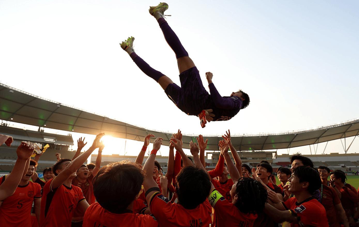 u23国足vs乌兹别克斯坦u23国足点球赢了 头号功臣,李昊赛后被全队队友抛起庆祝,我可以去抛吗,我力气大。国足