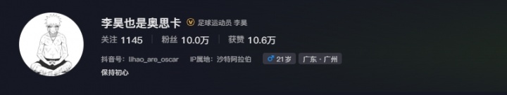 值得一提的是,李昊的社媒简介写着:保持初心。
