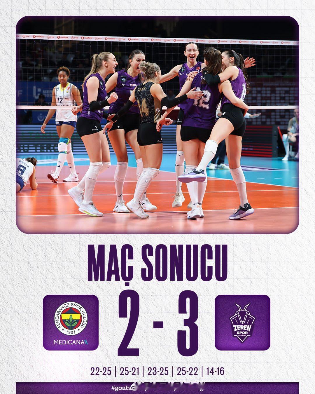 【小采娃、巴尔加斯各28分难救主 费内巴切2比3泽仁体育】北京时间17日晚上,女排土超常规赛第16轮,费内巴切以2-3(22-25, 25-21, 23-25, 25-22, 14-16)不敌泽仁体育,遭遇第三场失利。费多罗夫采娃、巴尔加斯各28分,克里斯蒂娜、艾达(拦5)各10分,卡拉奇、奥罗各6分;乌泽拉克26分,拉扎列娃、S·沙欣各18分,阿克曼6分,阿里奇5分(拦4)。