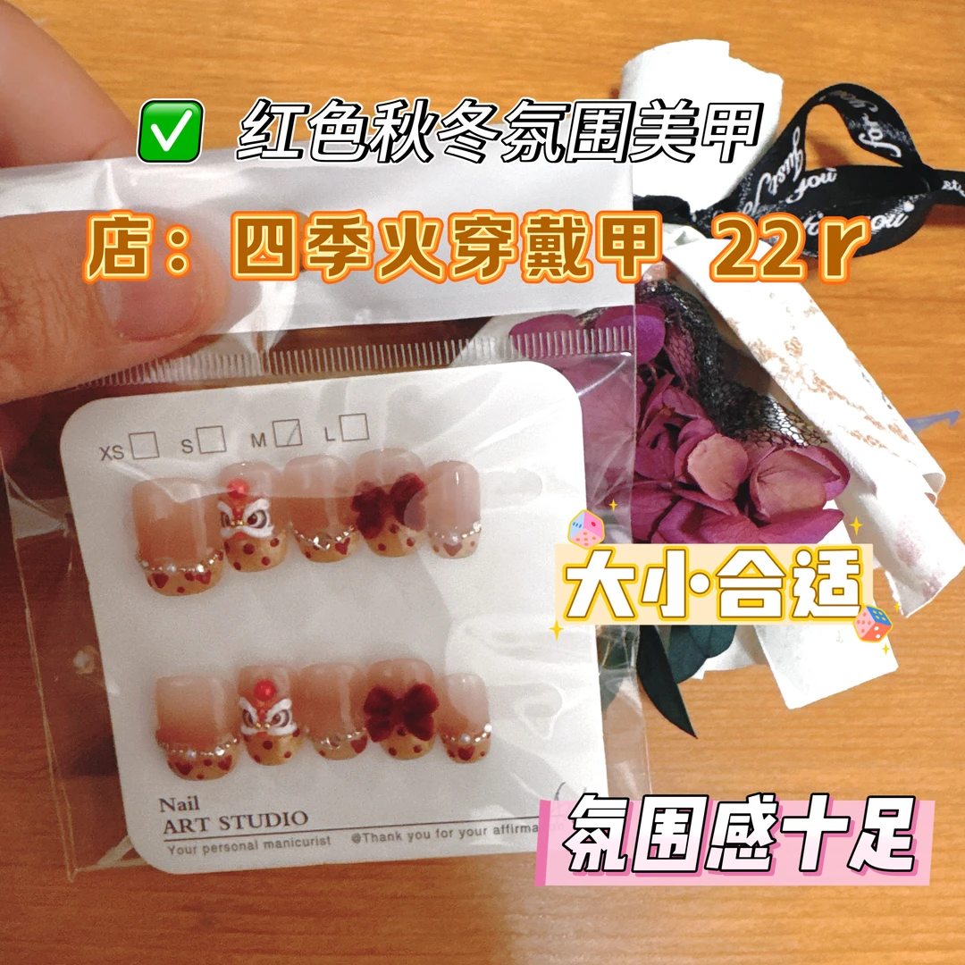 Pdd好物分享拼多多好物红色秋冬氛围美甲少女感蝴蝶结美甲秋冬琥珀美甲ins波点猫眼美甲 ins韩系多巴胺美甲手绘爆款可爱美甲拼夕夕购物分享美甲学生党美甲