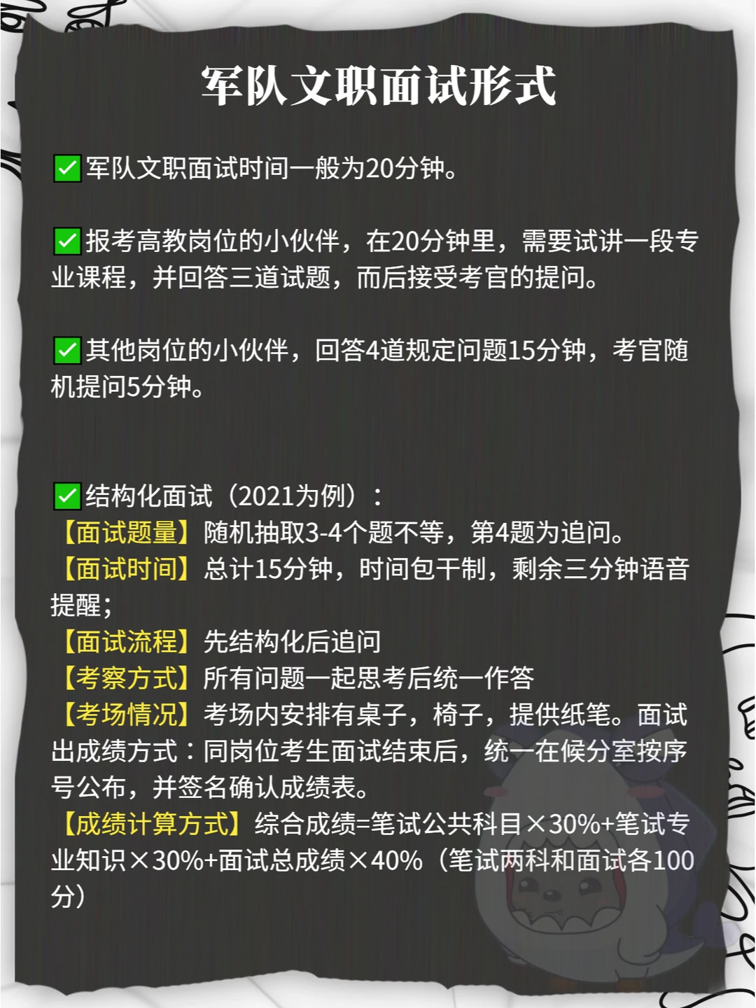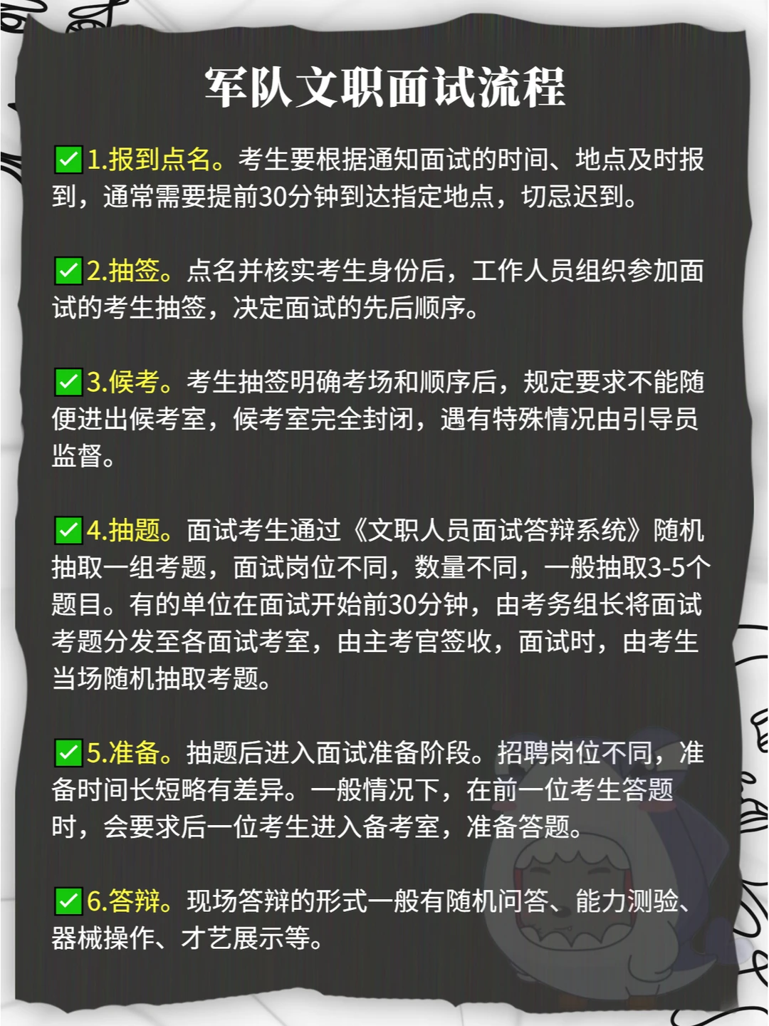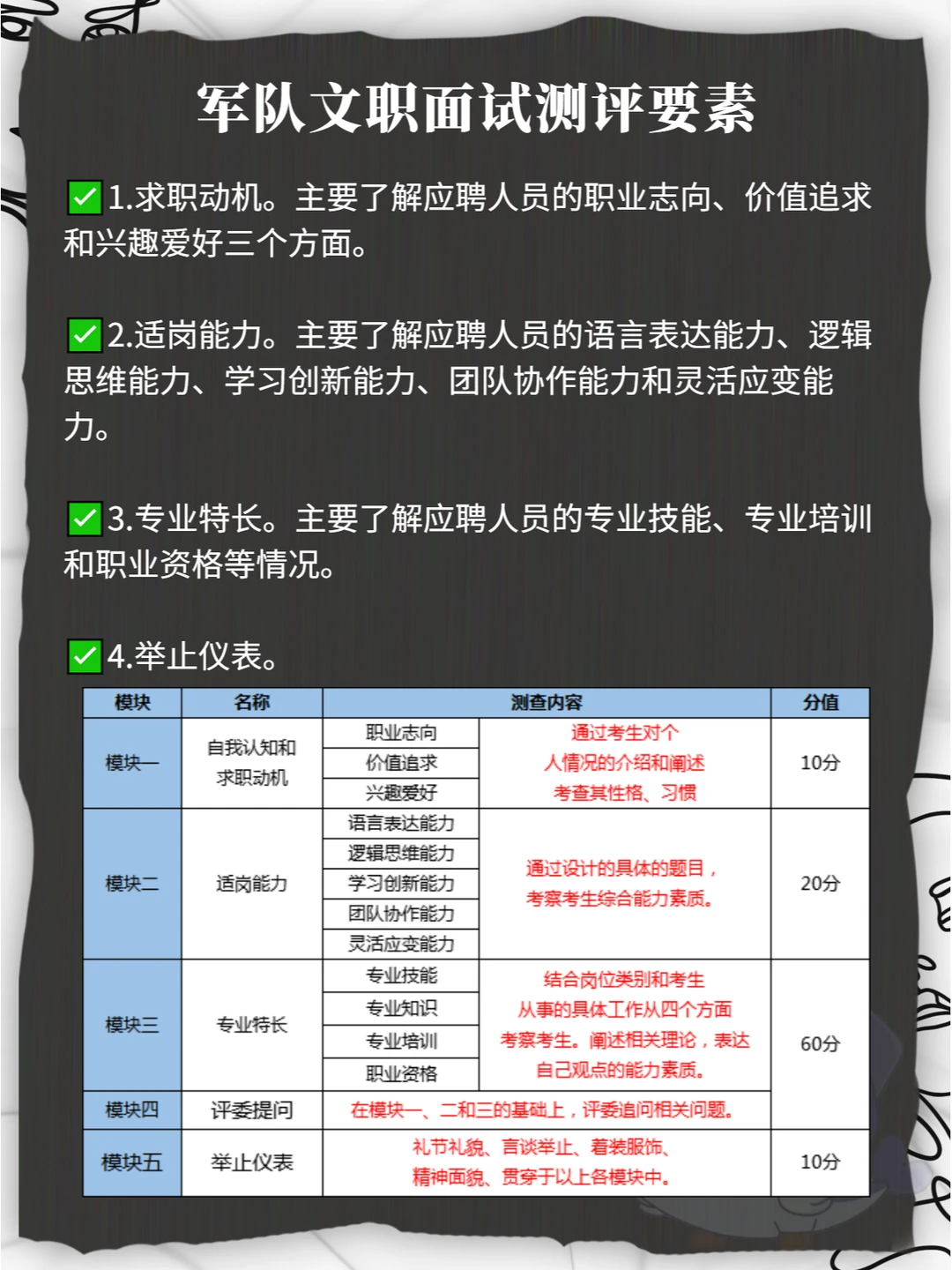 🎈军队文职面试基本上涉及三种形式,即结构化面试、情境模拟、追问。