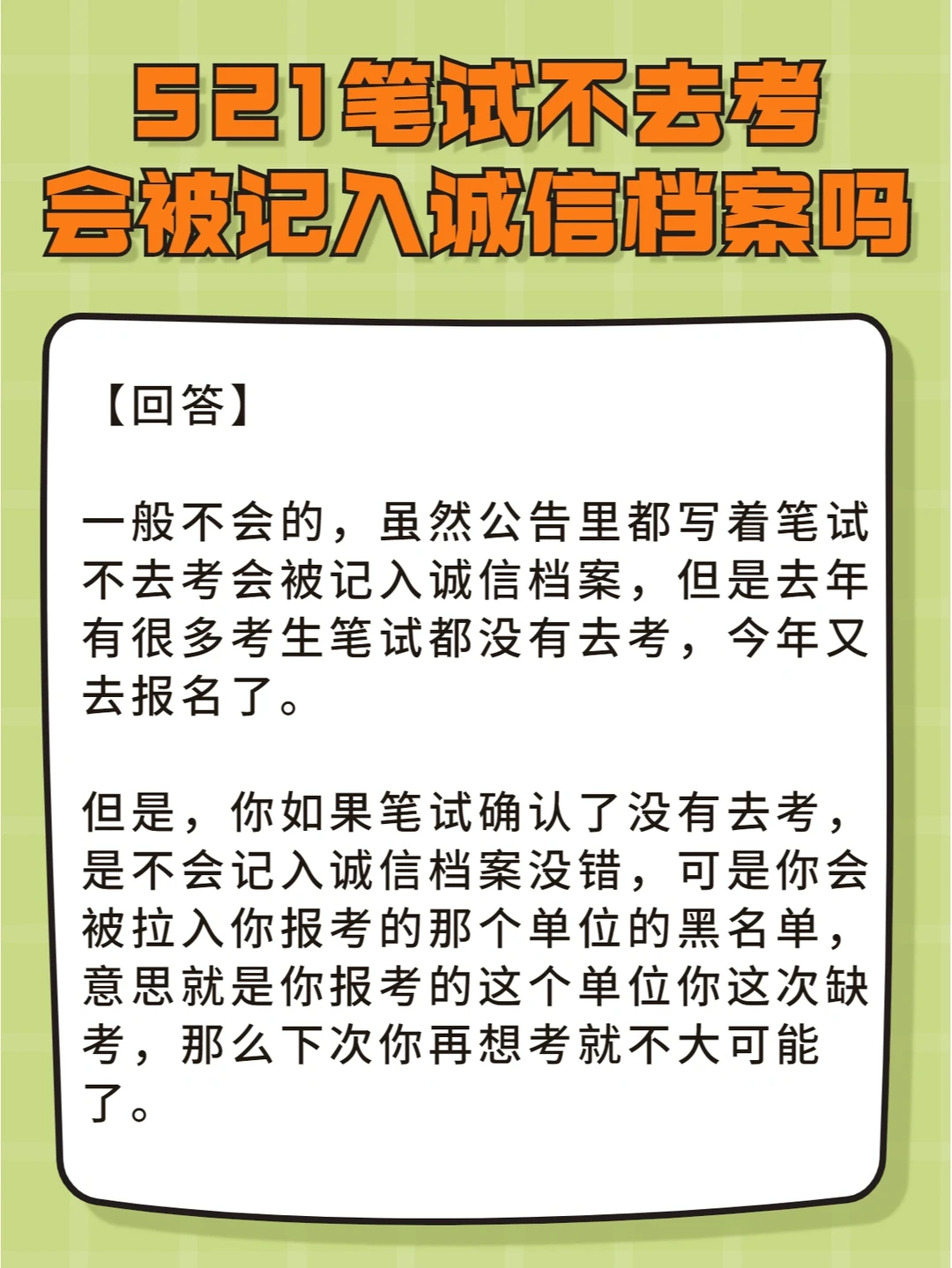 福建事业单位521联考笔试不去考会不会被记入诚信档案?