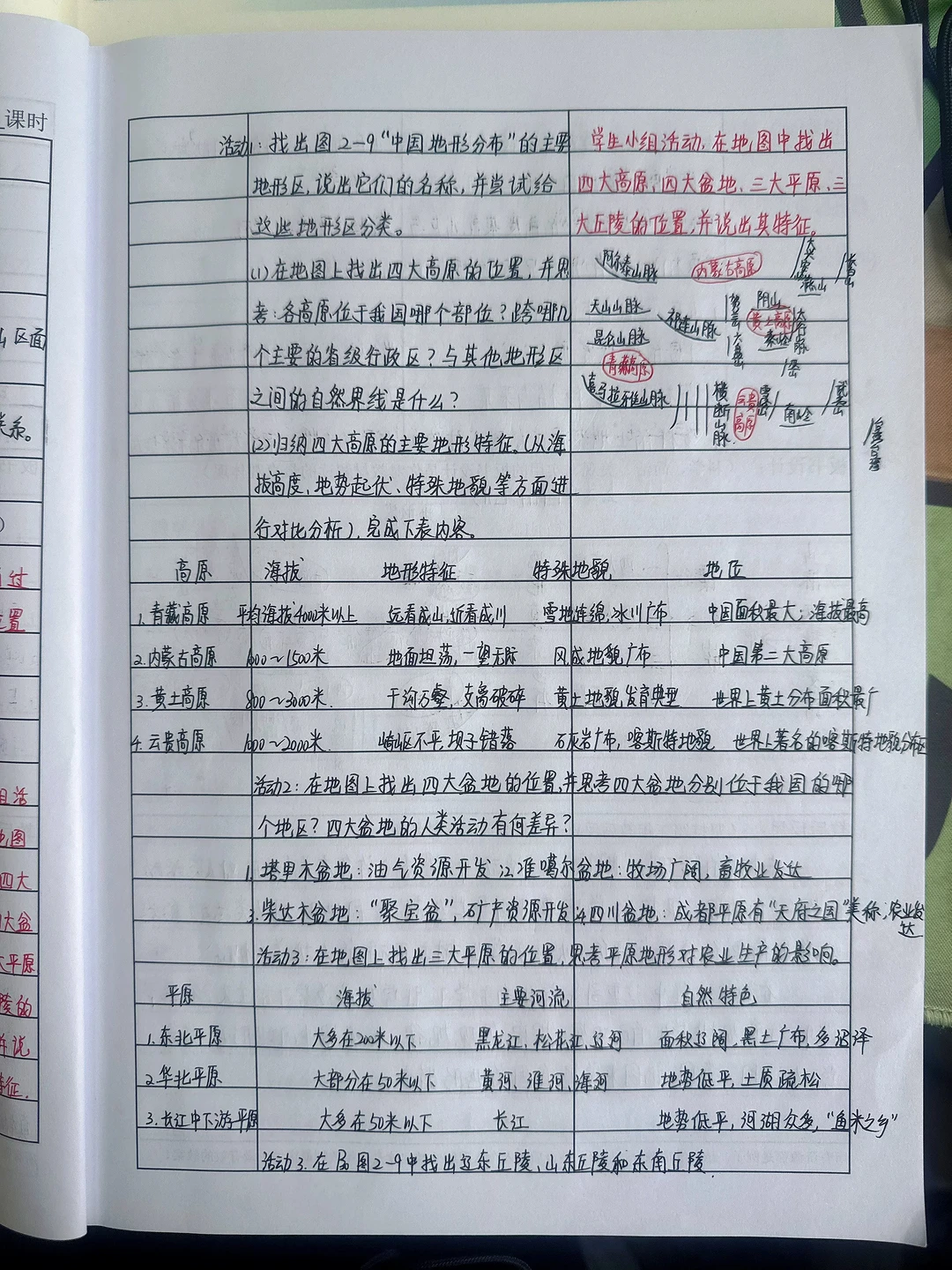 中国的地形终于写完了,写了3个课时,山脉篇、地形篇、地势篇。