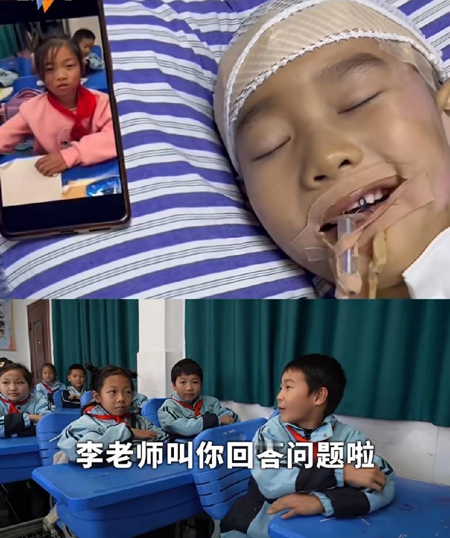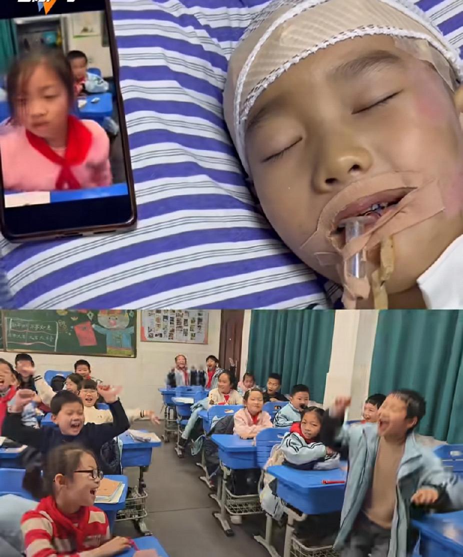 看哭了!小学生车祸昏迷55天,老师和同学们用爱心将其唤醒!他醒来的那一刻,教室里一片欢呼! 1月16日,湖南岳阳金鄂小学的一间教室里欢呼声不断!有的孩子在鼓掌、有的孩子在欢呼、有的孩子开心的跳起来、有的孩子激动的爬到了凳子上、甚至有的孩子,激动的流下了眼泪! 因为这一刻,是他们人生中最重要的一课! 2025年11月份,班里的一名男同学刘楚熙因为一场车祸陷入了昏迷。当医院诊断,刘楚熙醒来的希望非常渺茫!刘楚熙的妈妈几度陷入崩溃,但他仍不愿意放弃儿子! 刘楚曦的同学和老师得知消息后,班里一片寂静,后来,陆陆续续传来了孩子们小声抽泣的声音! 医生建议,要多用快乐和温暖的人和事情来刺激他的大脑,可以作为辅助治疗手段来唤醒他! 在这55天里,班主任,李老师经常组织孩子们,拍摄视频或者录制课堂的声音,发给刘楚熙的妈妈。妈妈就会把这些声音播放给他听。 在很长一段时间里,他都没有任何反应。但妈妈没有放弃,同学们和老师,也没有放弃。 直到元旦那天,他听到了同学们对他的期待,第一次短暂的睁开了眼睛。这对于所有爱他的人来说,无疑是一个巨大的好消息! 之后,老师便组织同学们挨个为刘楚熙送上期待的祝福语,孩子们的话语很朴素,只是简单的一句:“如果你听到了我的声音,就把眼睛睁开吧。” 为了能够更快的唤醒他,老师组织同学们演了小情景剧。 老师:“一本字典大约是40,后面应该填写什么单位呢?我们请刘楚熙同学来回答这个问题!” 这时一个小男孩,看向刘楚熙的座位:“刘楚熙,老师叫你回答问题啦?” 视频播放到这里,嘴里还插着管子的刘楚曦突然咧嘴笑了。他在不省人事的这段时间里,所有的人都没有将他遗忘。而他也感受到了同学们和老师对他的思念,这说明他的大脑越来越活跃,已经恢复了一部分意识! 感念老师和同学们日复一日的发来视频,妈妈第一时间将这个好消息告诉了老师。 课堂上,老师神神秘秘的说:“告诉大家一个好消息,刘楚熙同学终于恢复意识了!” 在某一个瞬间,教室里鸦雀无声。随后,教室里一片沸腾!孩子们欢呼雀跃,鼓掌叫好,甚至有的孩子激动地流下了眼泪! 人生有许多课,可是对于孩子们来说,这是他们人生中最难忘,也是最重要的一堂课,这堂课就叫做“爱”! 爱能抵万难,说的不只是爱情和亲情!还有同学情、师生情和友情!这么多人爱他,他怎么舍得一直不醒来呢? 同学情
