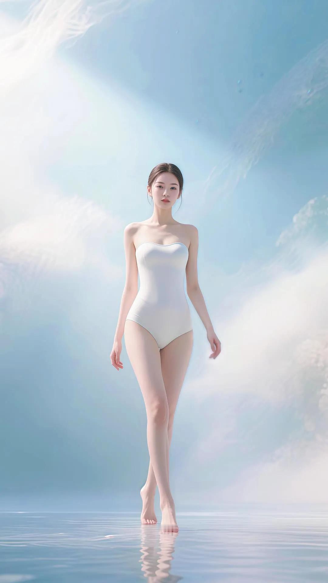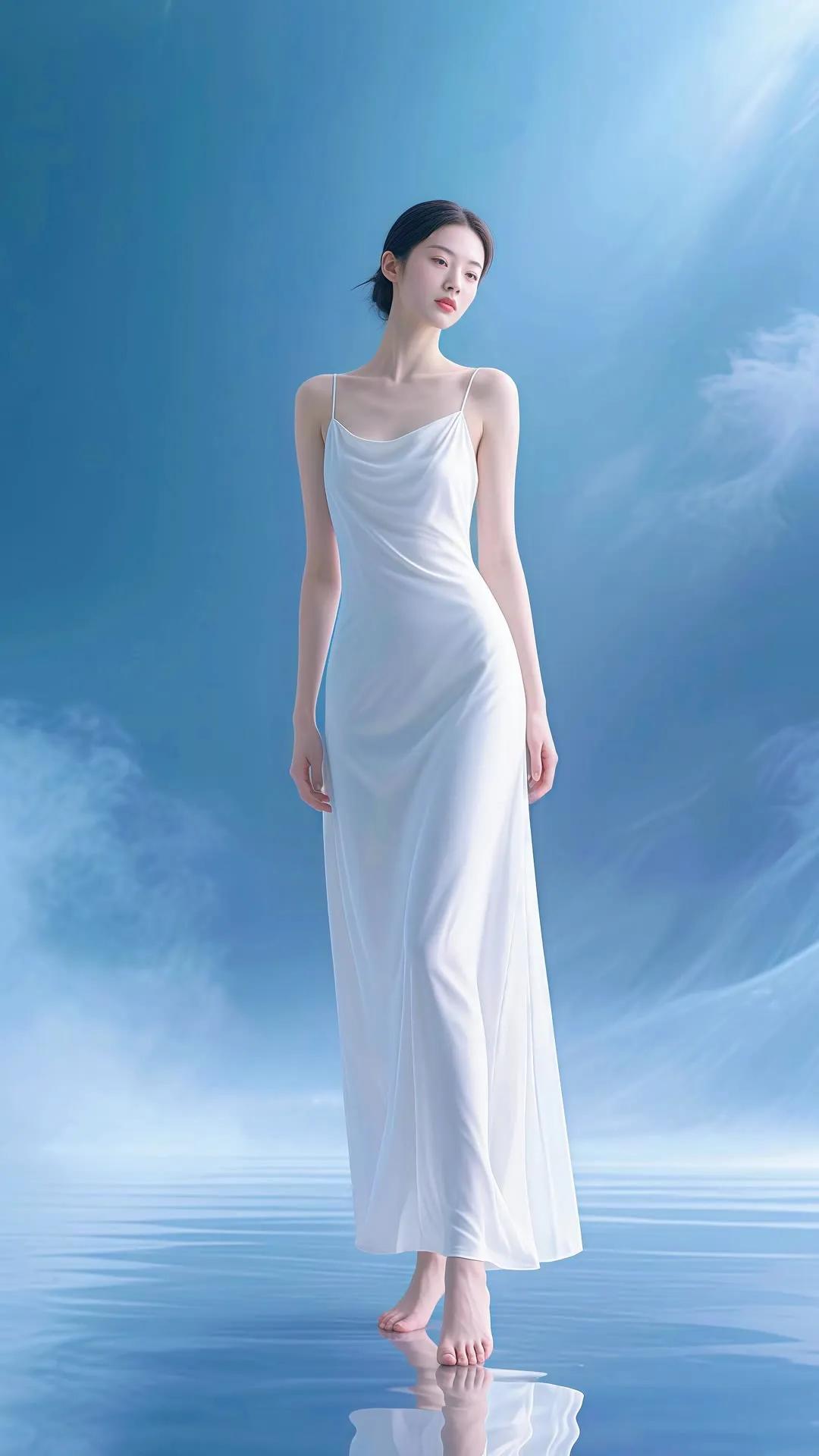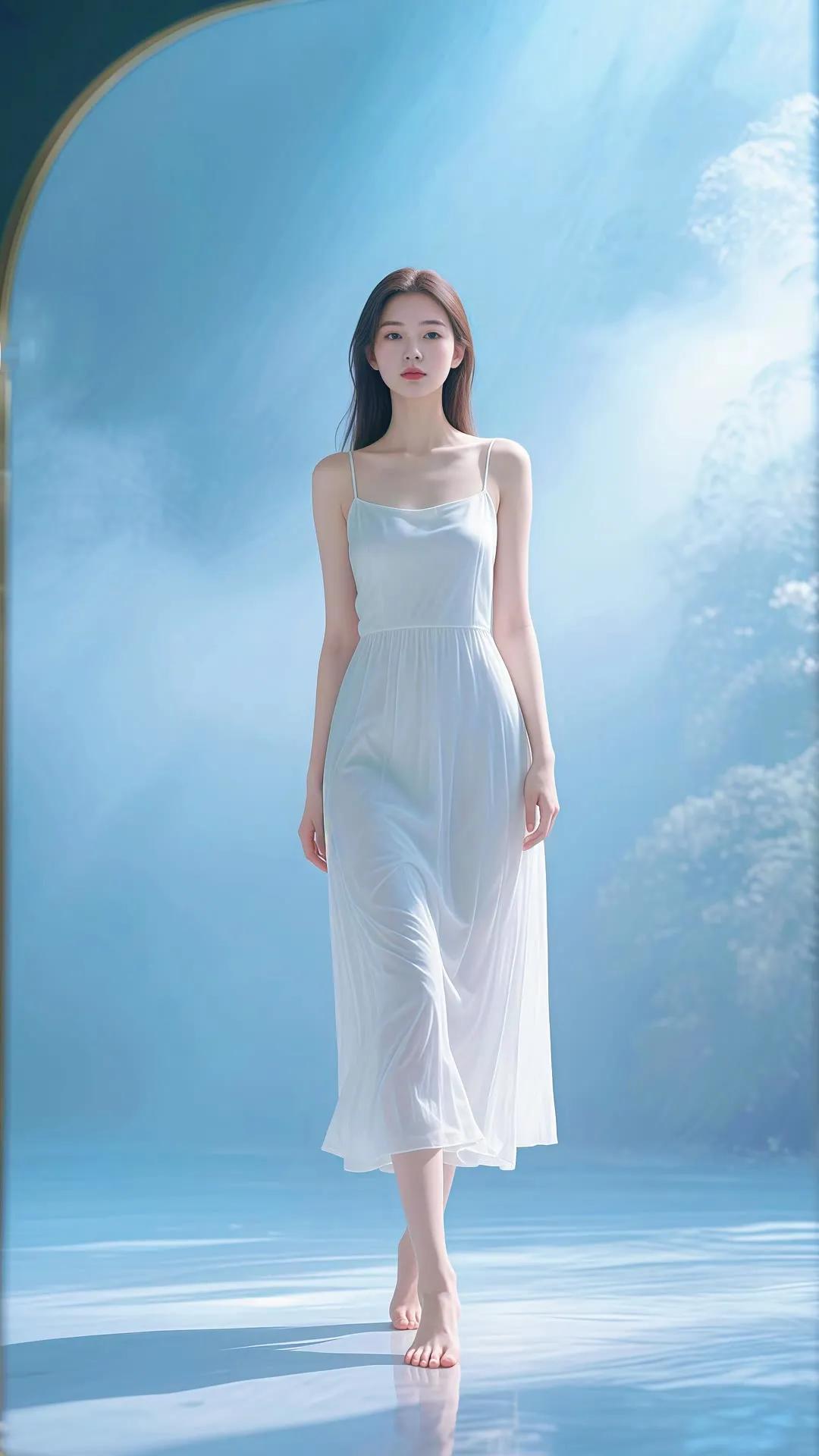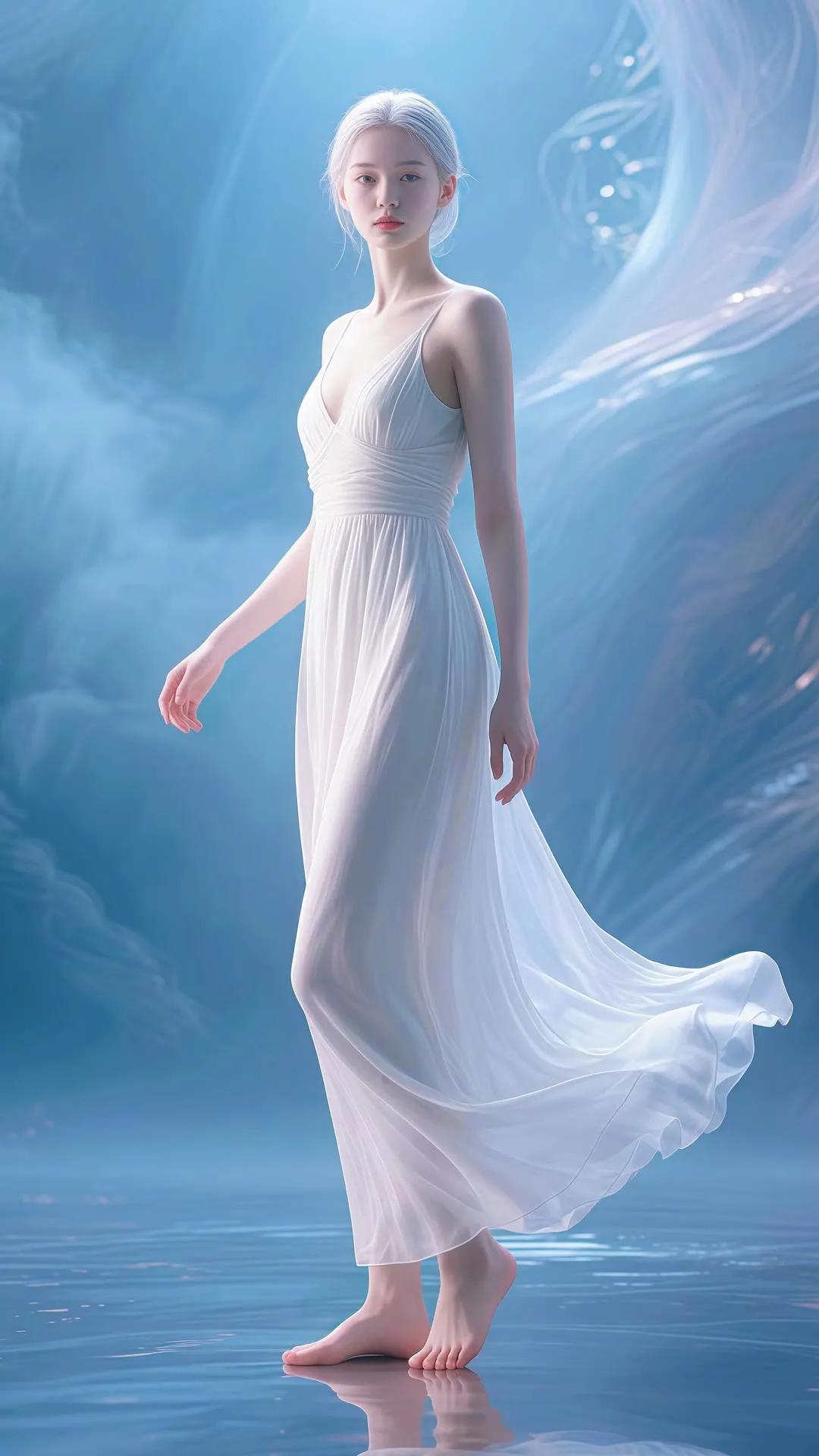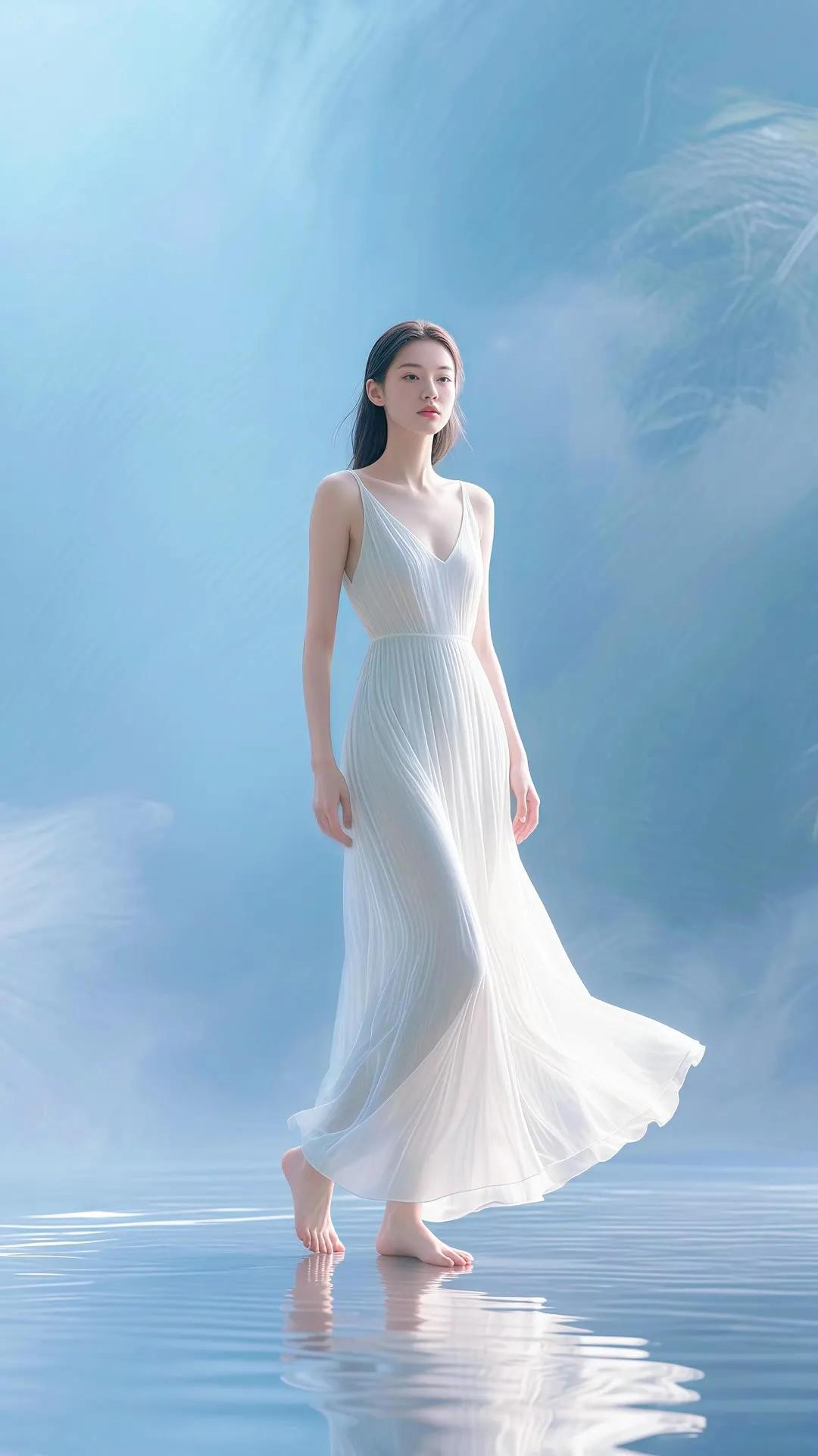 仙气飘飘的梦幻少女,轻盈漫步在碧波之上。