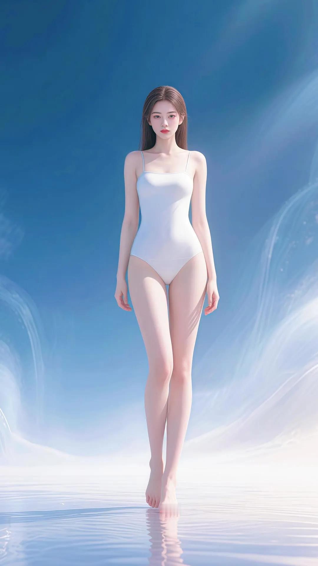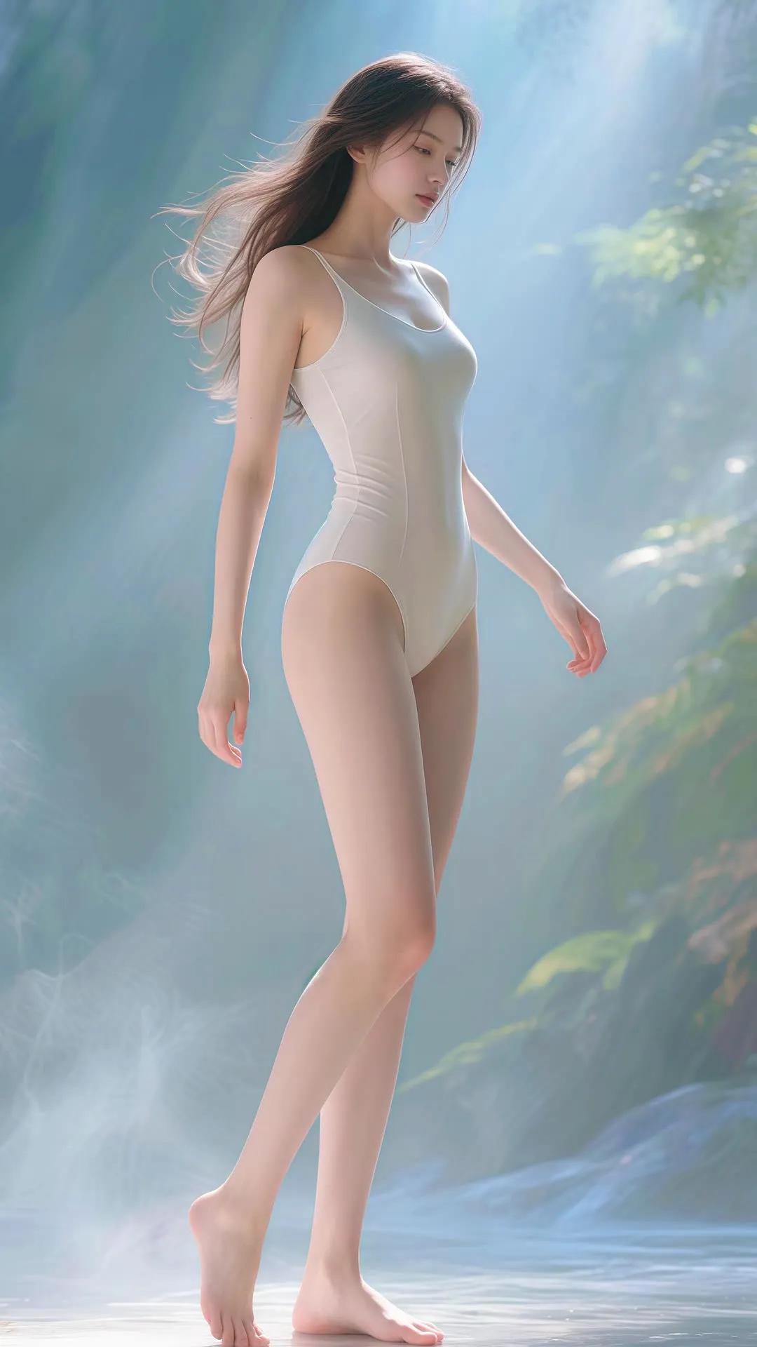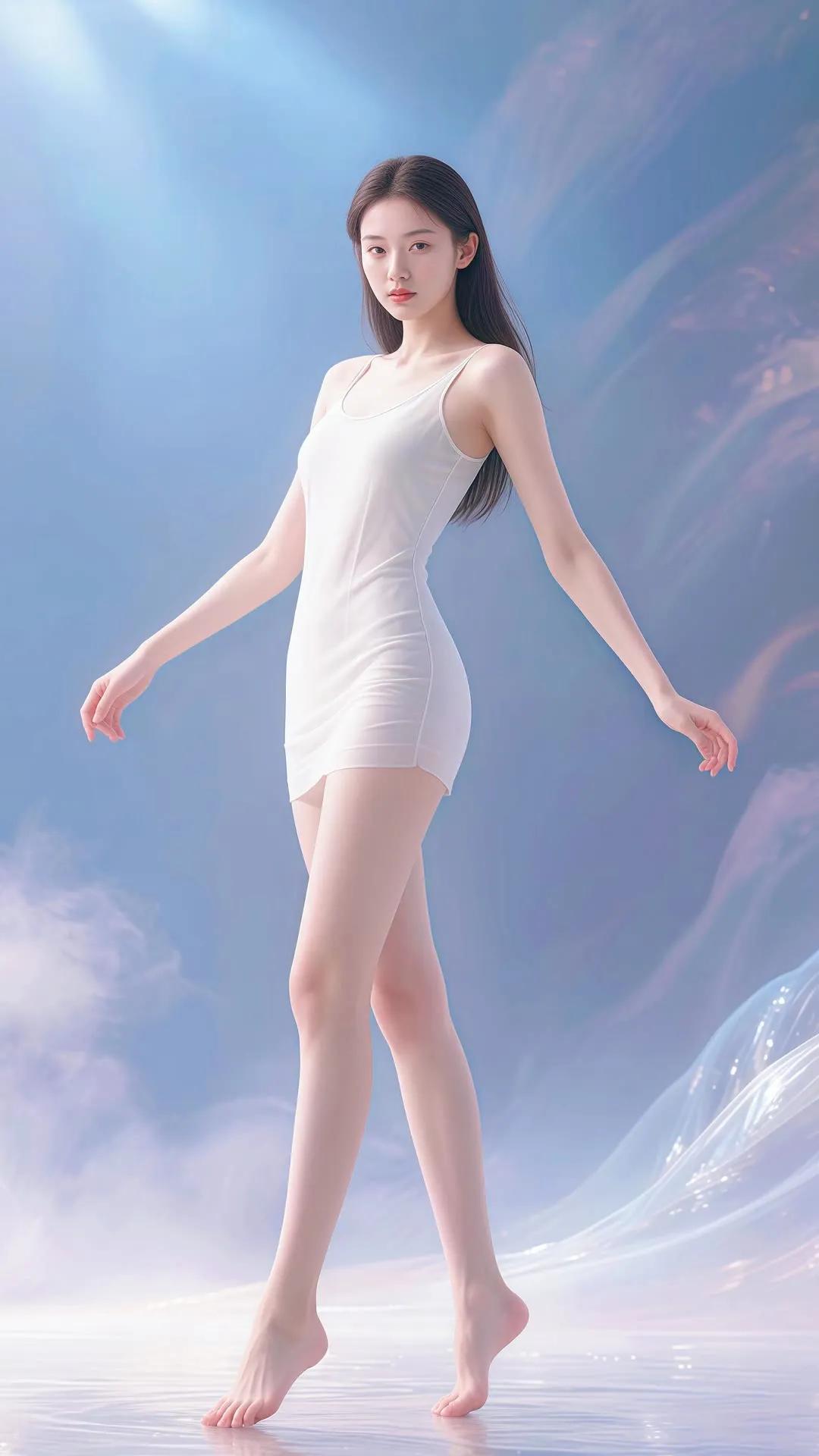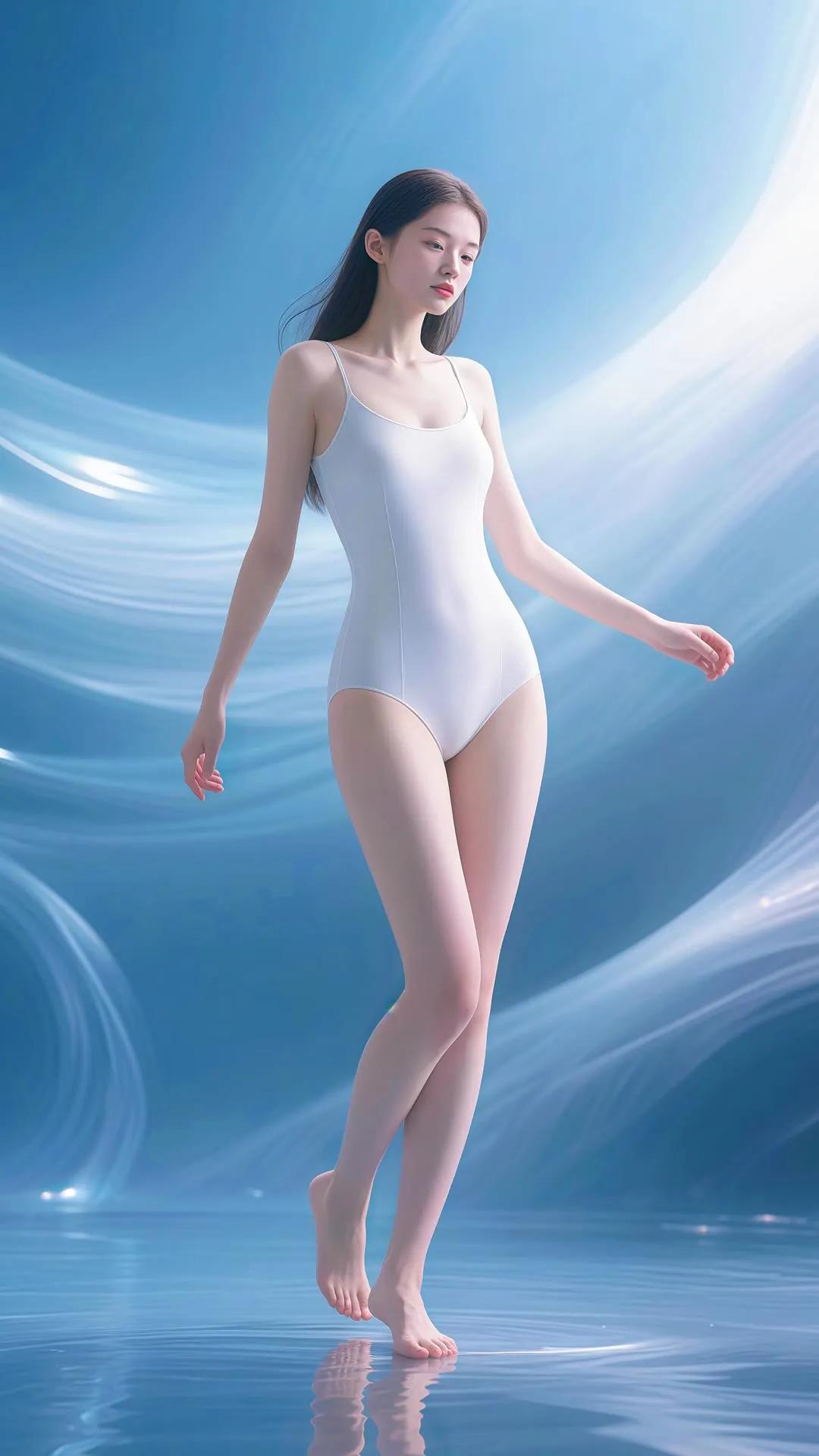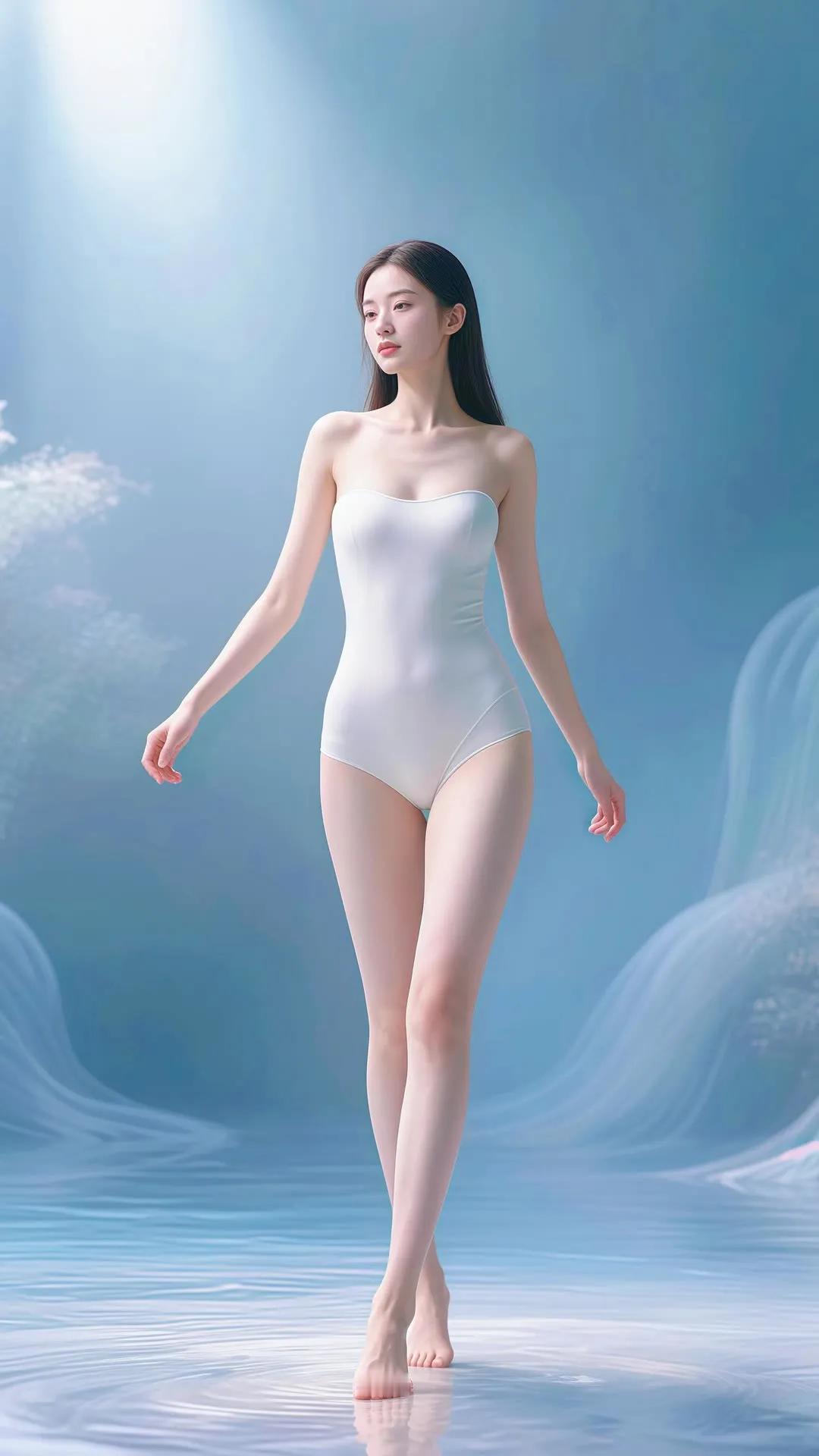 仙气飘飘的梦幻少女,轻盈漫步在碧波之上。