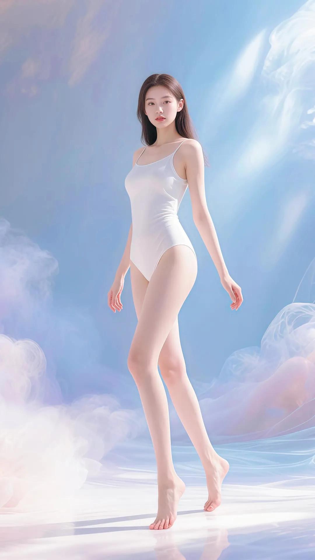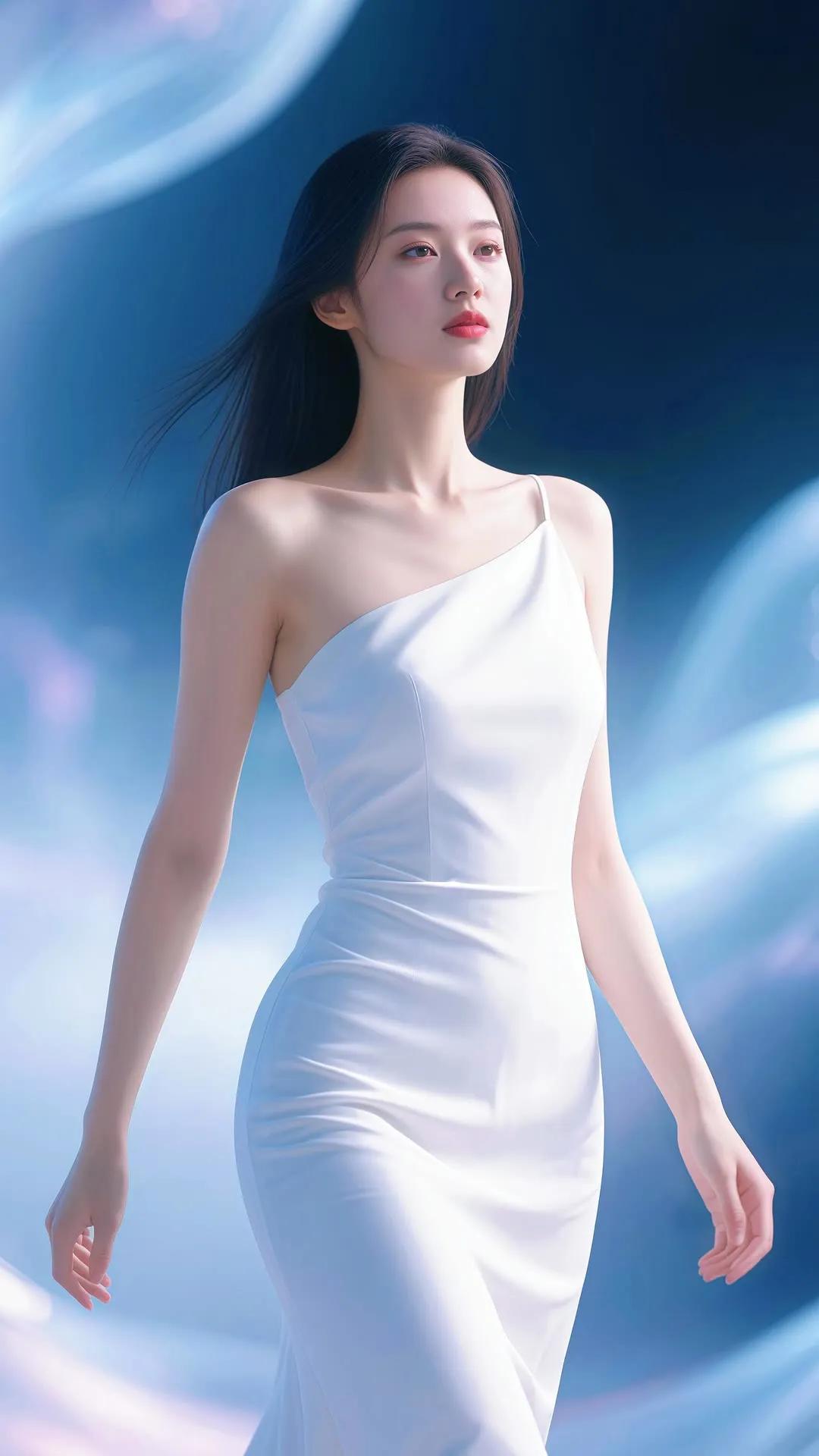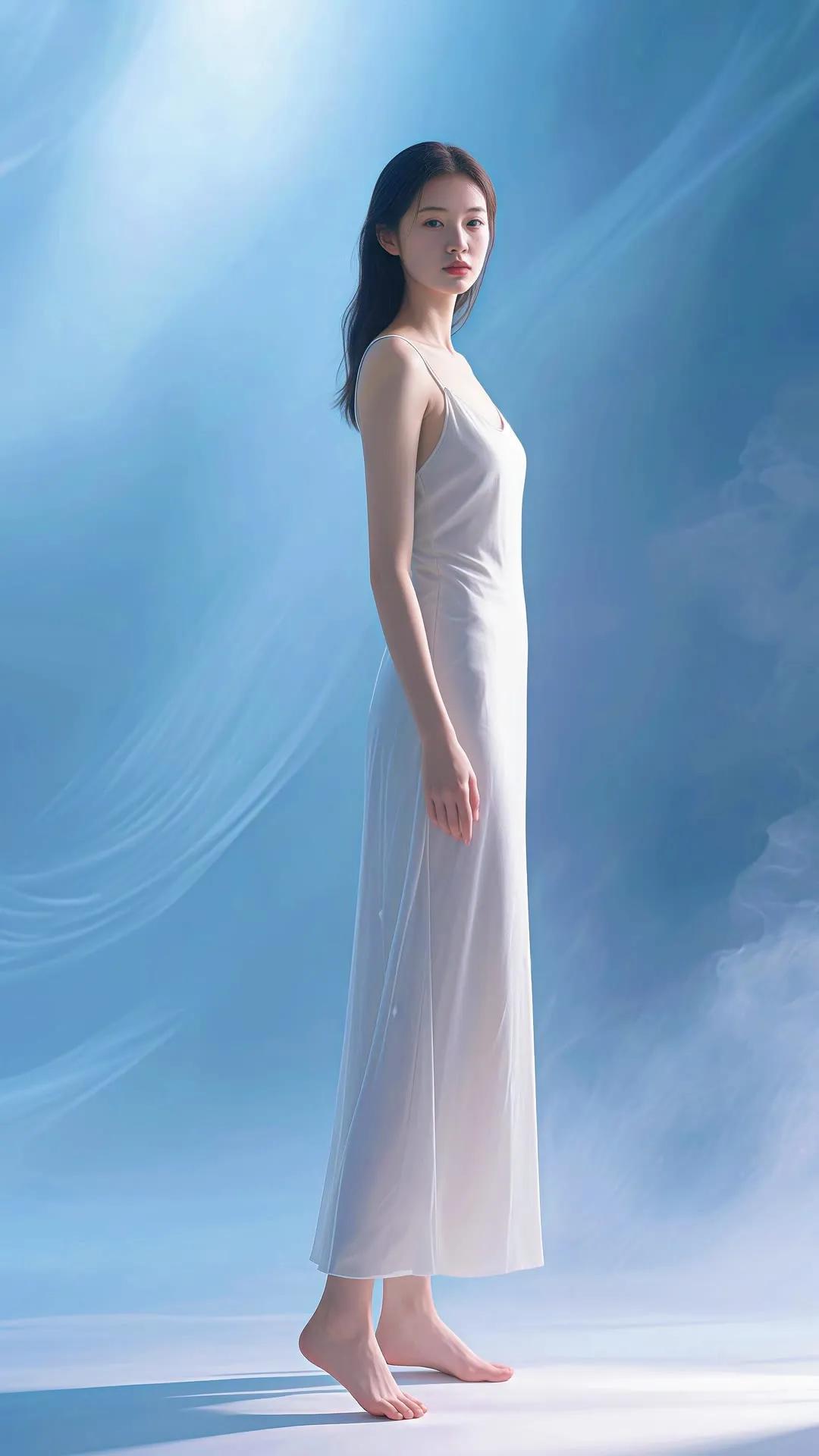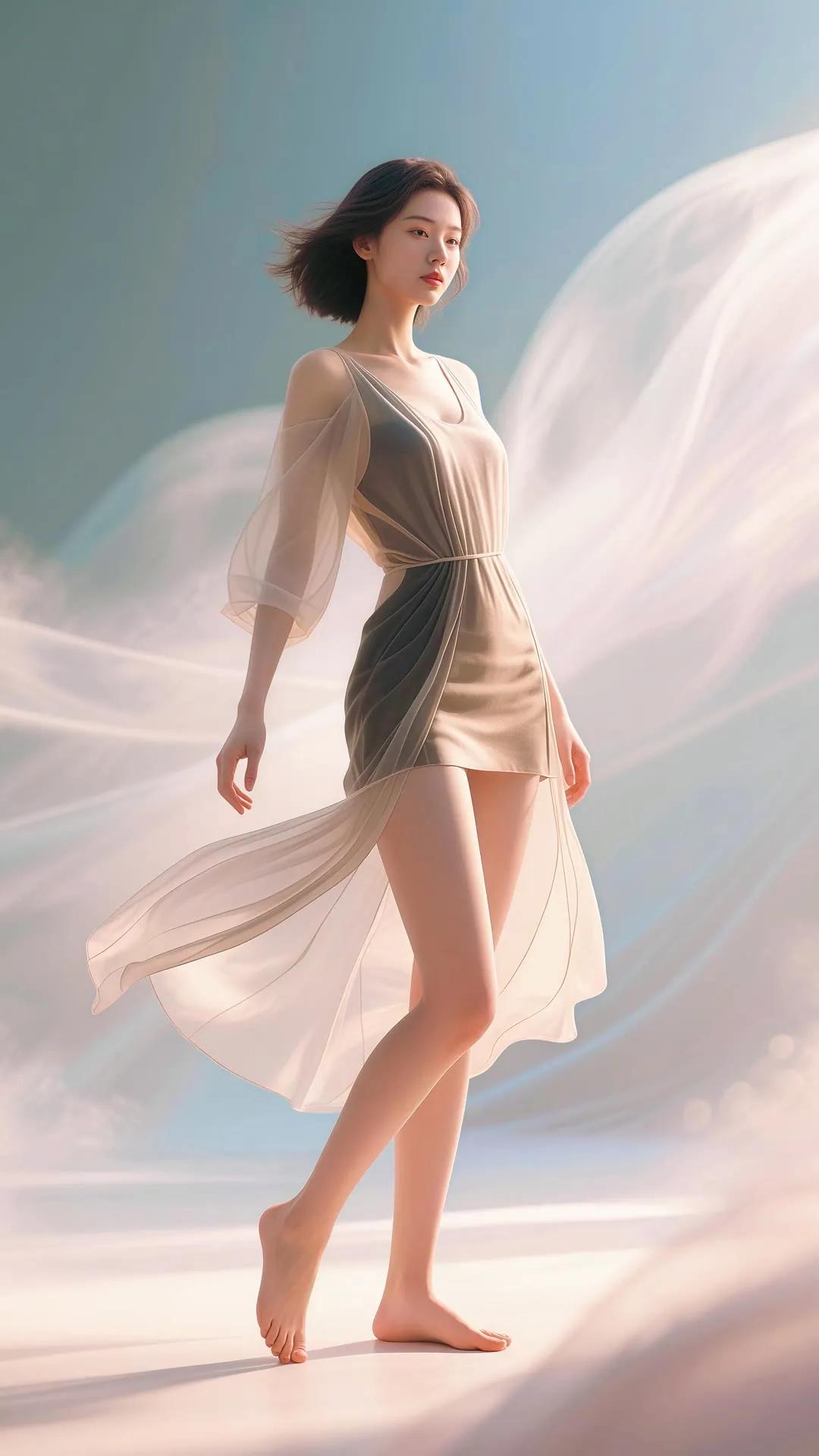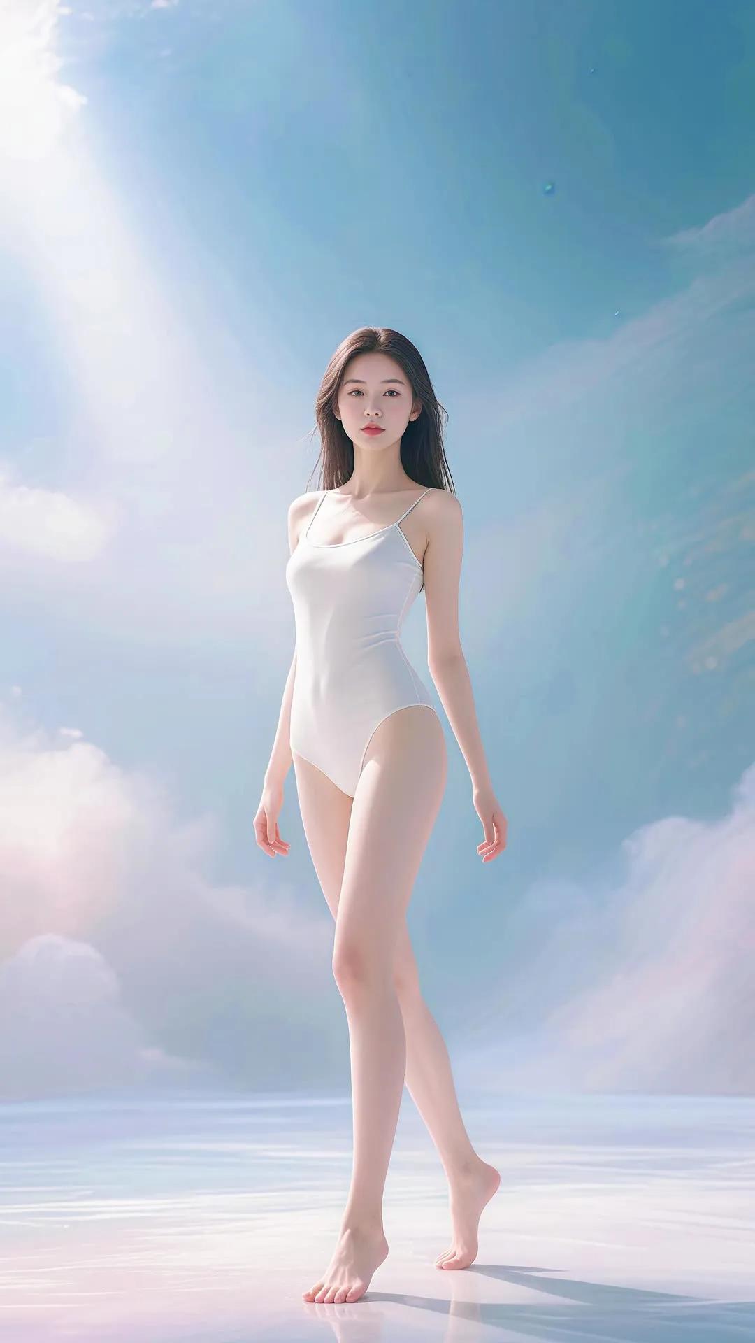 仙气飘飘的梦幻少女,轻盈漫步在碧波之上。