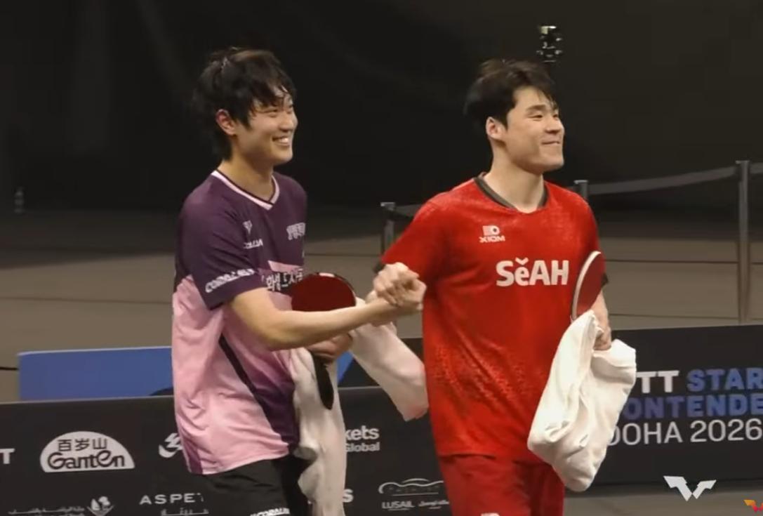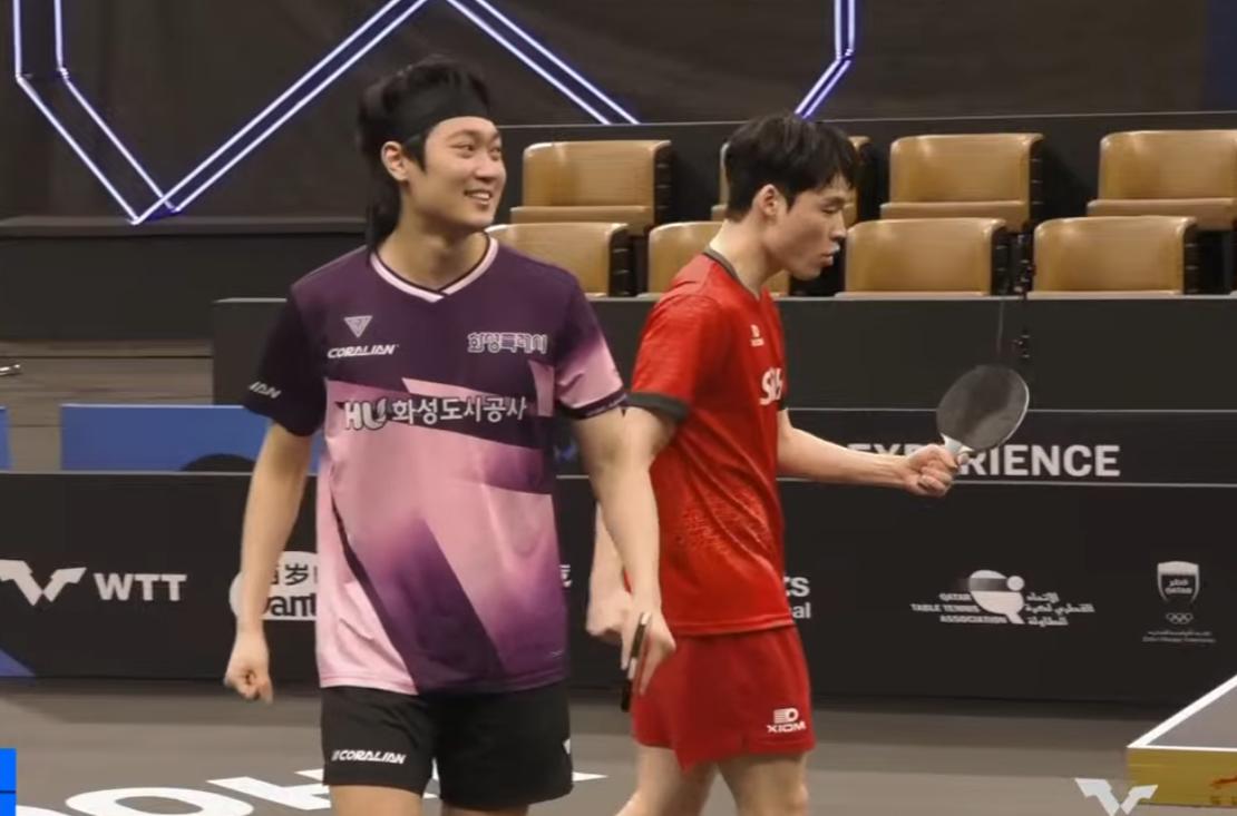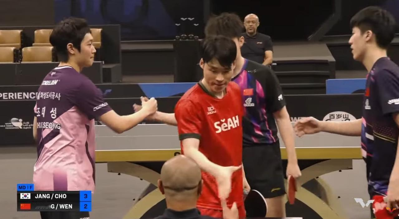 黄友政/温瑞博虽败犹荣, 决胜局打9:11输的。 自从东哥退出WTT后, 张禹珍有些膨胀, 今天又是嗷嗷的叫, 还朝国乒小将握拳了。 黄友政20岁, 温瑞博18岁, 你们两个老将打赢了, 就像很光荣似得。 今天黄友政/温瑞博拼的很棒, 虽然输了, 不用怕, 你们还年轻, 下一次见面, 打爆他们。