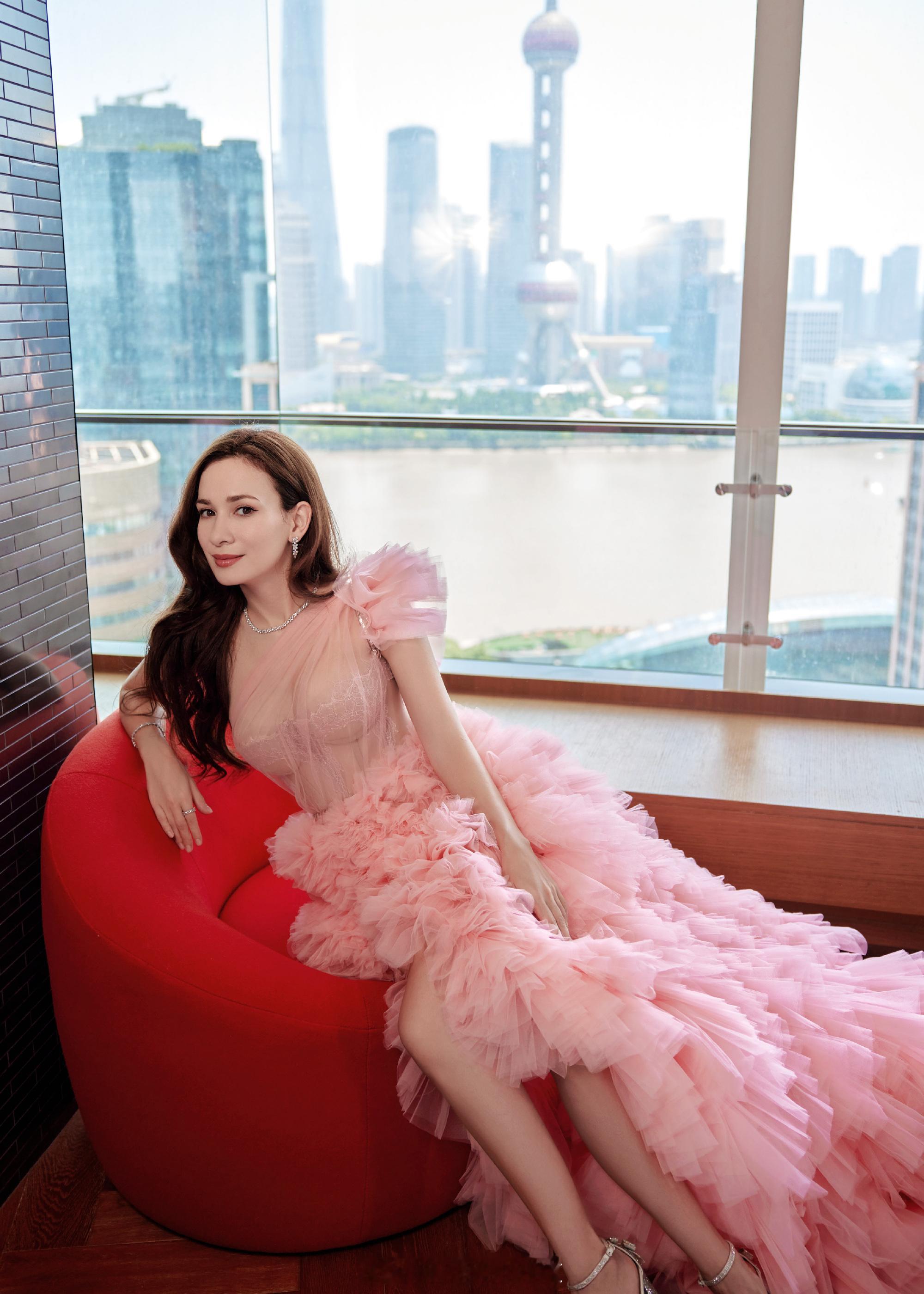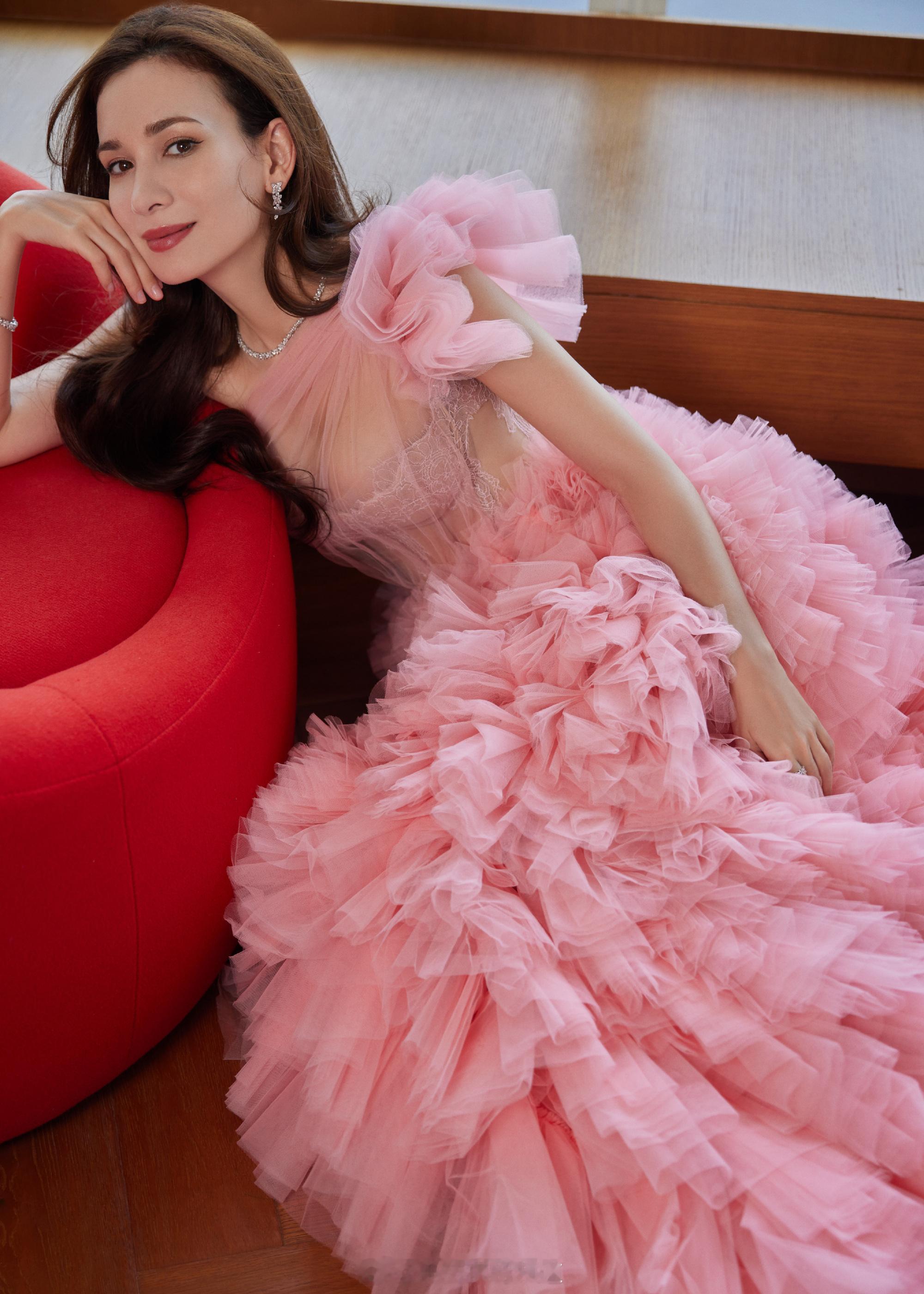 佟丽娅的粉裙造型杀疯了!浅粉纱裙+飘逸披风,优雅大气又仙气,这才是氛围感美人的正