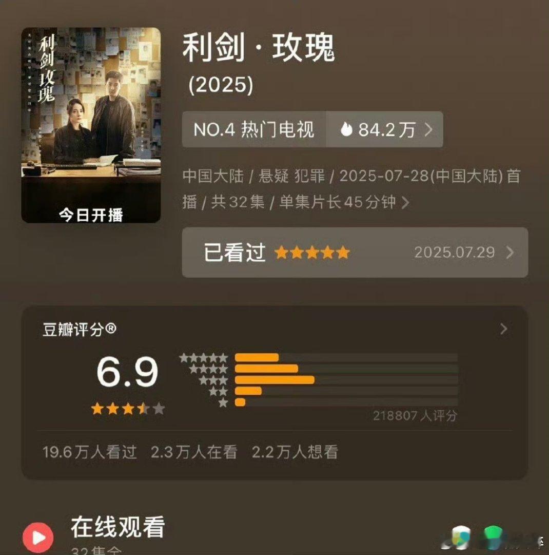 反正多了5万人评分,分型也是一点没变的,分数也是没变的,他喵的,利剑玫瑰真的是精品好剧