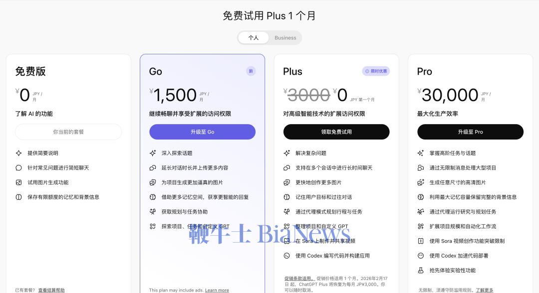 如果你是Plus、Pro或企业版的付费用户,那么恭喜你,你的界面依然会保持纯净;但如果你打算尝试刚刚推出的月费仅8美元的ChatGPTGo订阅服务,那么你依然属于被广告覆盖的目标人群。