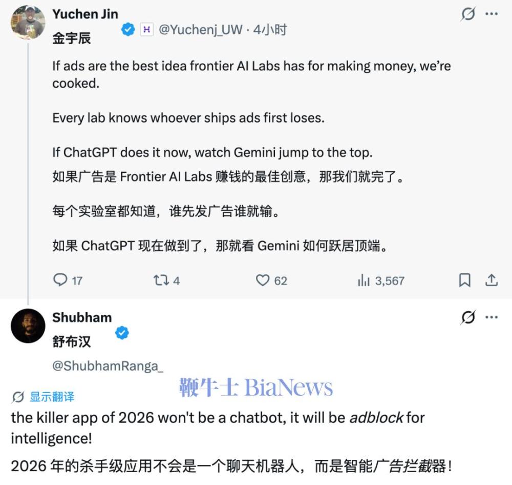 于是,贩卖广告成了一根放在AI牌桌上的救命稻草。谁压力大,谁就得先伸手。只是,谁先在对话里明目张胆地塞广告,谁就有可能先把最敏感、最挑剔的那批用户送到别家模型那里去。