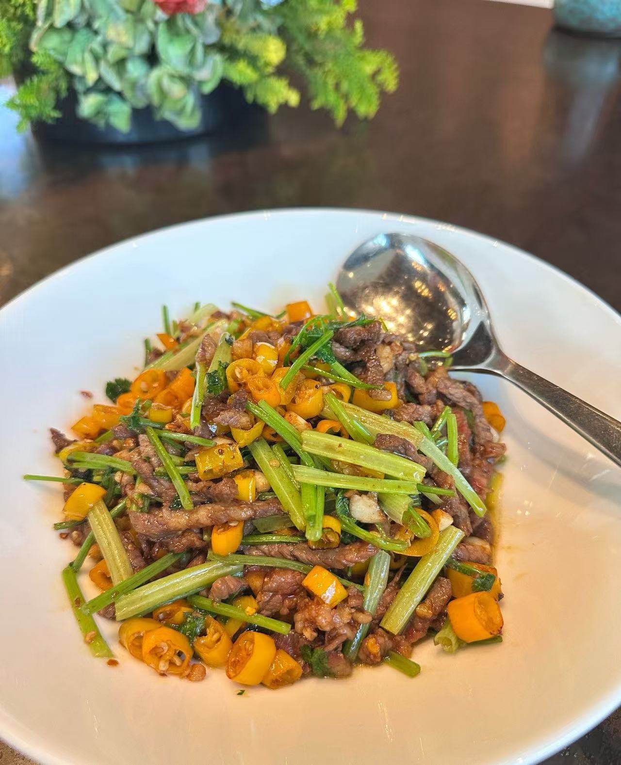 5️⃣.家烧笋焖肉、小炒黄牛肉、雪花肉炒青南瓜等都是特色菜。