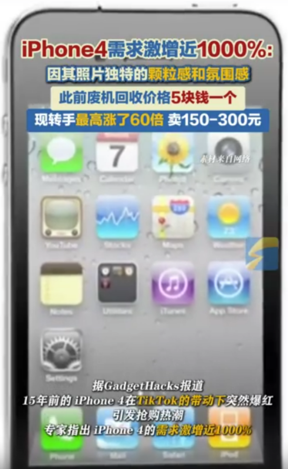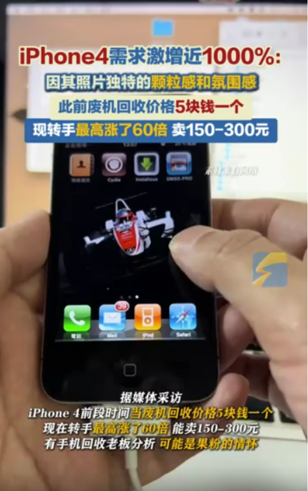 15 年前的 iPhone4 疯涨 60 倍!复古潮下的情怀,该不该买单? 谁能想到?2010 年发布的 iPhone4 居然翻红了!😭 此前 5 块钱一斤的“废” 机,现在二手价飙到 150-300 元,未拆封版更是炒到近千元,价格直接暴涨 60 倍! 翻红的原因太真实了: ✅ 复古潮流杀疯了!年轻人看腻了亿级像素和 AI 修图的精致感,反而迷上 iPhone4 500 万像素拍出的颗粒感、老电影滤镜质感,就像之前爆火的撕拉片,停产反而成了 “香饽饽”,从 70 元 / 盒涨到最高 2000 元~ ✅ 商家炒作推波助澜!之前 3-5 元批量回收的废机,被商家营造 “稀缺感”,硬生生炒出天价,清库存的同时收割情怀。 但家人们注意了!⚠️ 隐藏风险不能忽视: ❌ 安全隐患拉满:仅支持 2014 年的 iOS7.1.2 系统,12 年没更安全补丁,联网就容易泄露隐私; ❌ 高价接盘预警:官方回收价才 3 元,二手溢价严重,实用价值几乎为零。 其实复古潮是消费多元化的体现,追求独特体验没毛病,但情怀不能当饭吃啊!😮 买之前先想清楚:你是真的喜欢老机型,还是被炒作裹挟?别为了一时跟风,花大价钱买个 “电子废品”~#iPhone4翻红 #复古潮流 #理性消费 #数码圈大事件