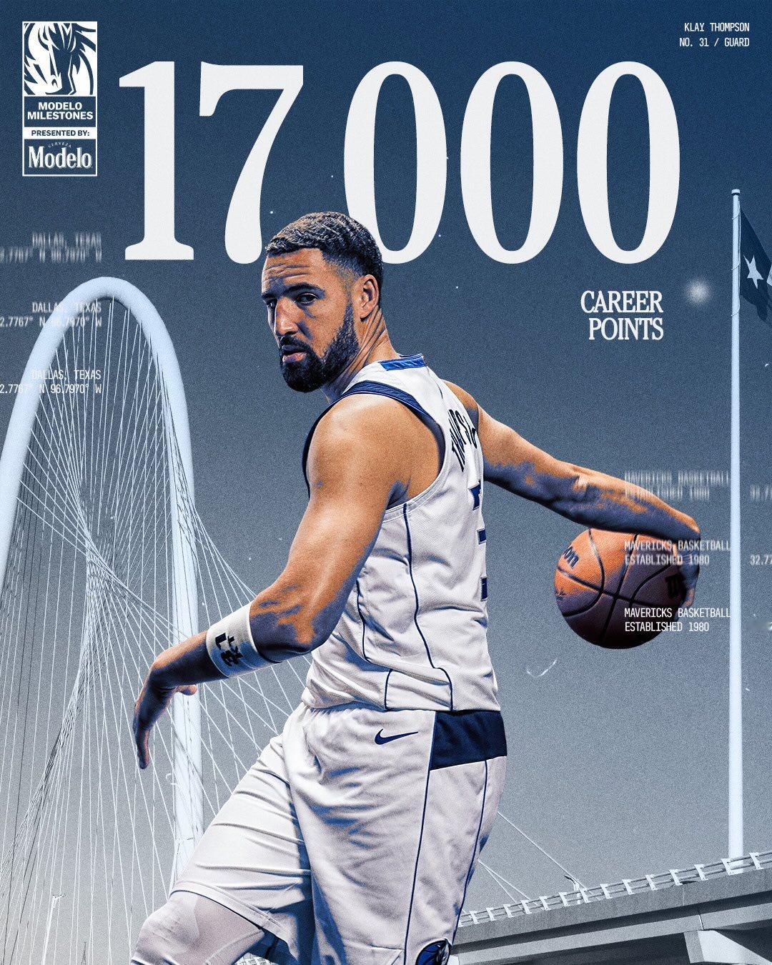 又是一个里程碑之夜:克莱延续了最近的好状态,上半场就投进 6 颗三分,拿下 23