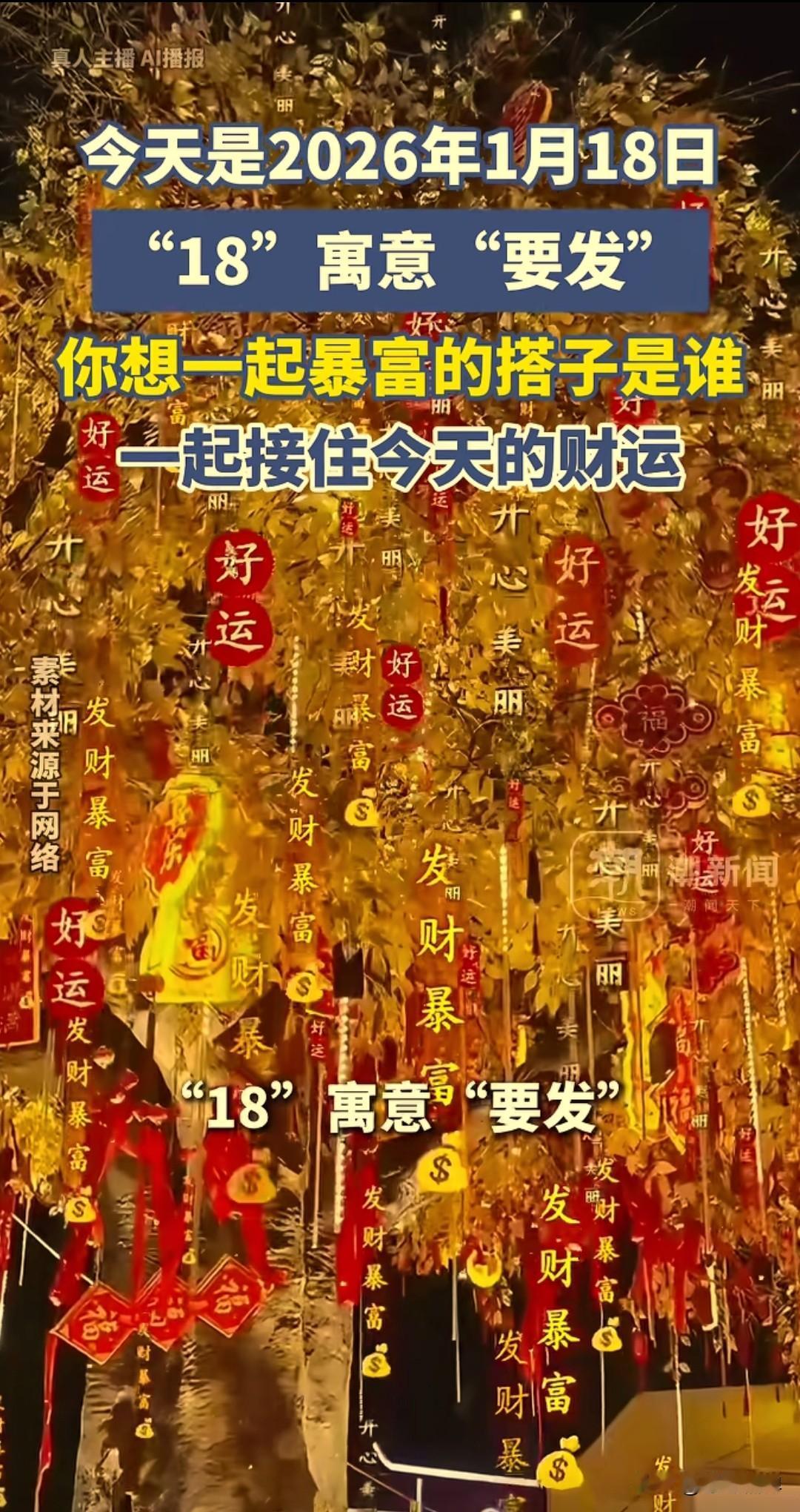 今天是2026年1月18日,18寓意要发,都来接好运吧,祝大家今年发发发!!!