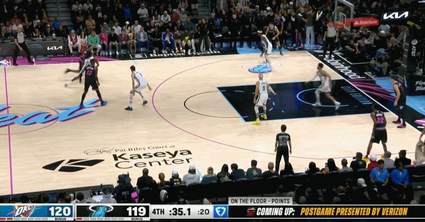 维金斯大心脏!雷霆队赛季第8败! 今天,主场作战的热火队以122-120险胜联盟战绩第一的雷霆队。本场比赛打得非常激烈,第四节最后35.1秒,热火队依旧以119-120落后1分,情况十分危急,这时候维金斯挺身而出,他迎着卡鲁索的防守命中了一记关键三分球,正是这记三分球帮助热火队拿下了最后的胜利。本赛季,维金斯已经多次在关键时刻表现出色,真是一个大心脏球员。