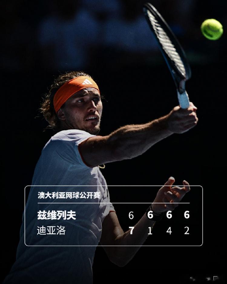 澳网男单首轮:兹维列夫3-1逆转迪亚洛,连续十年闯过首轮关