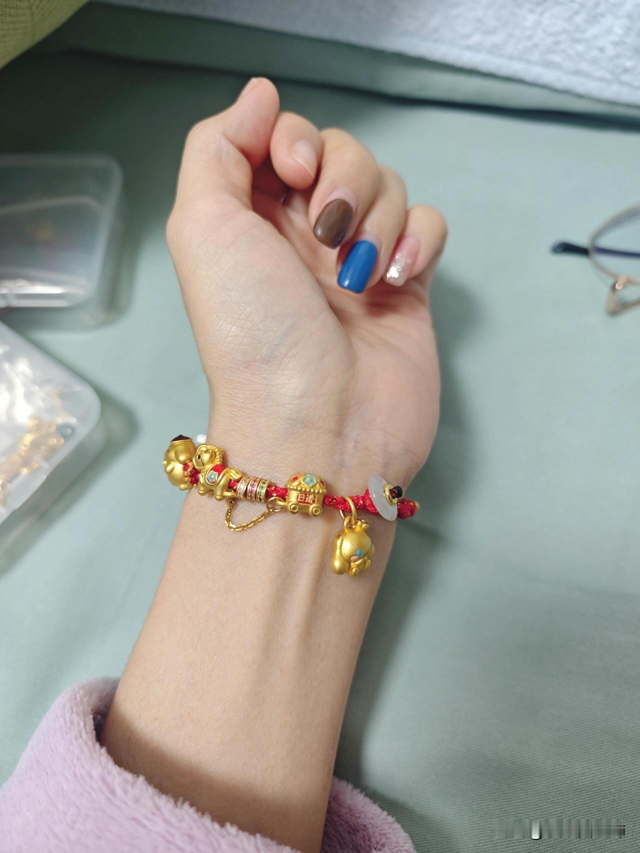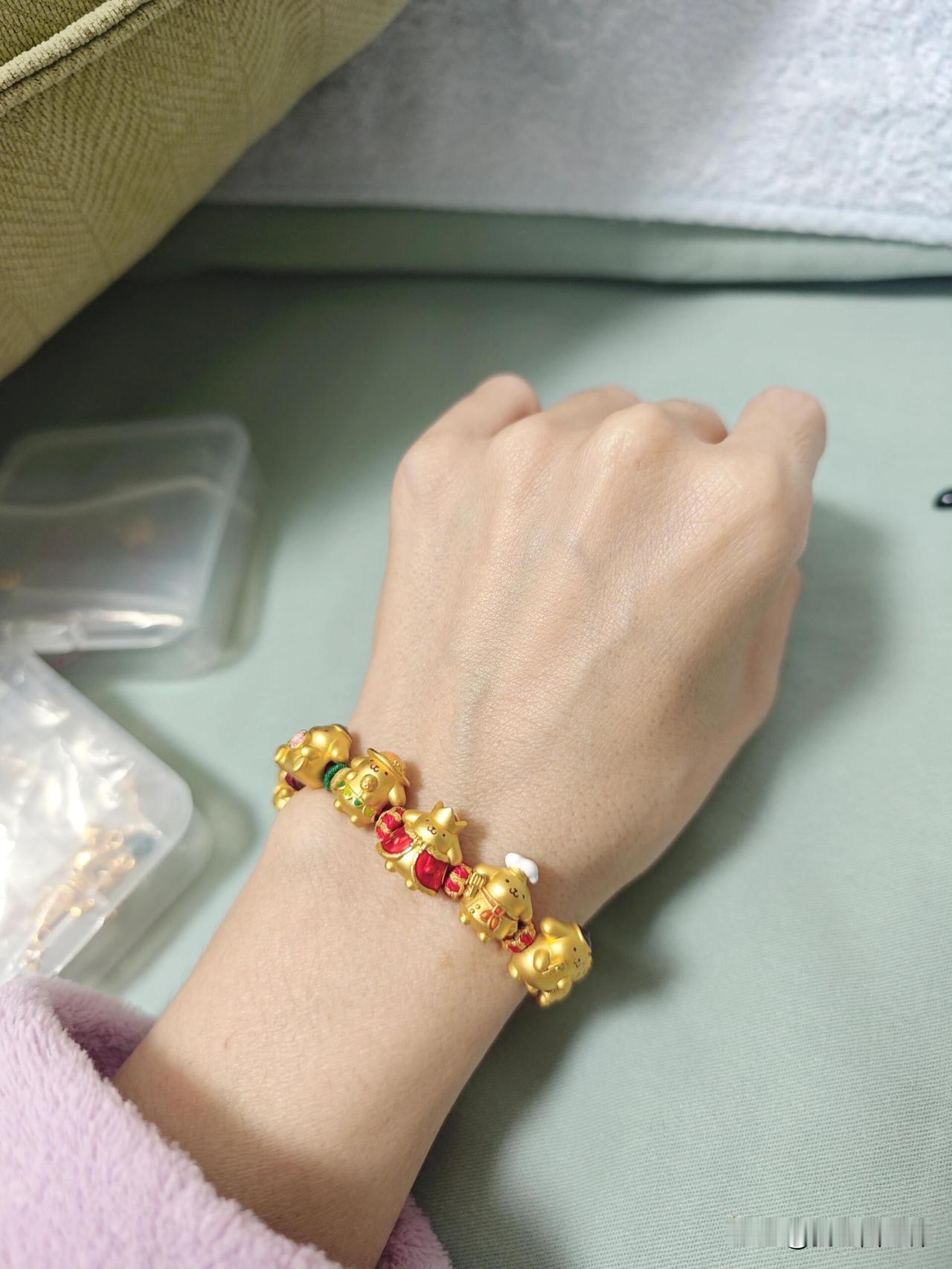 今天戴了这一串,坐电梯时被同一个楼点头之交的两个邻居议论了(因为穿的衣服袖口是宽松的,手腕垂下来刚好能看到) 邻居一:你还别说,你串这一整串还真挺好看 我:尴尬笑笑 邻居二:现在这金价太贵了,能买的都有钱 我内心:赶紧解释,哪有,都是一年攒一个慢慢攒的,哪能一下买得起… 电梯终于到一楼了,我赶紧说上班要迟到了先走了。 现在的经济环境真的尽量不要露财(虽然我这个不算啥),但是人心难测。 平时都是素圈手镯泥鳅背换着戴,可能单圈实心的比较藏金也不注意,今天换了个串珠一个一个凸出来比较显眼就被人议论了,可能她们也没别的心思就随口说说 但我还是在意了,尽量用袖子藏起来吧